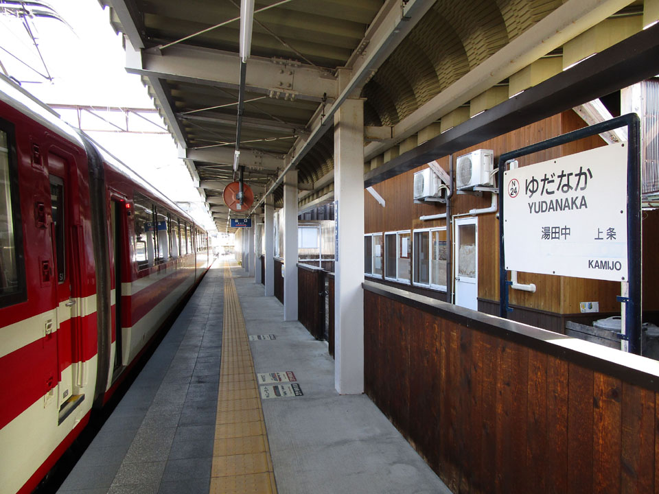長野駅では、長野電鉄からJR新幹線まで5分で乗り換える。