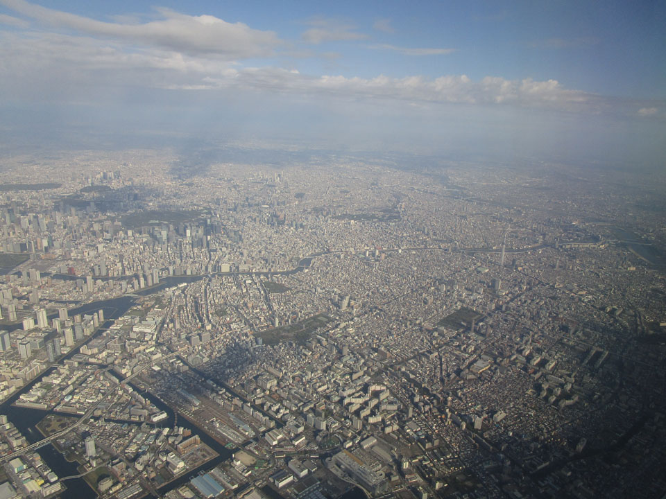 東京の摩天楼が見える。
