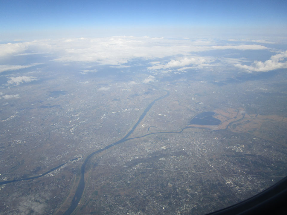 上空から見ると意外と新幹線は目立たない。