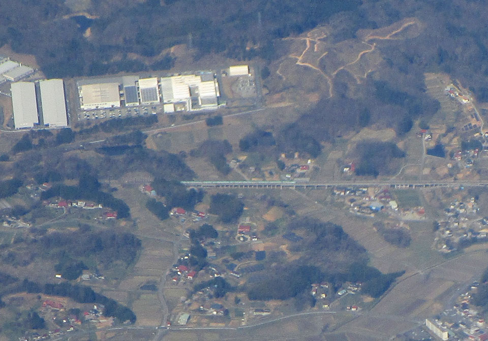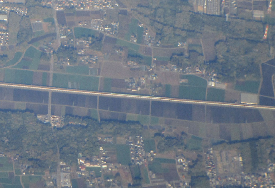 手前の一直線に左右に貫いているのは東北新幹線。直線っぷりがすごい。