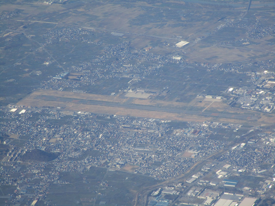 山形空港が見える。滑走路は2000mと意外と短い。