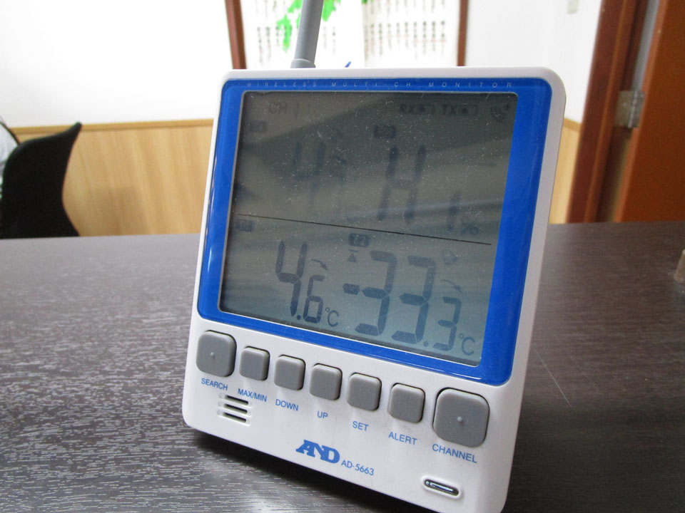 4.6℃と-33.3℃の表示は不明。厨房の冷凍庫か?