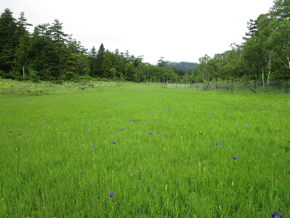 研究見本園の奥側半分はシカ柵に囲まれ、熊も入れなくなっているので安心。