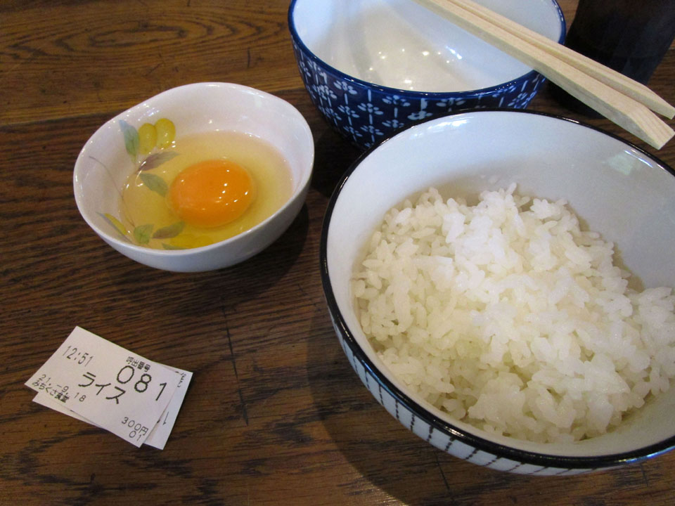 ここで卵かけご飯(350円)を食べる。