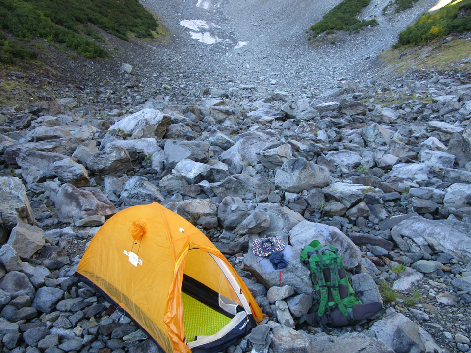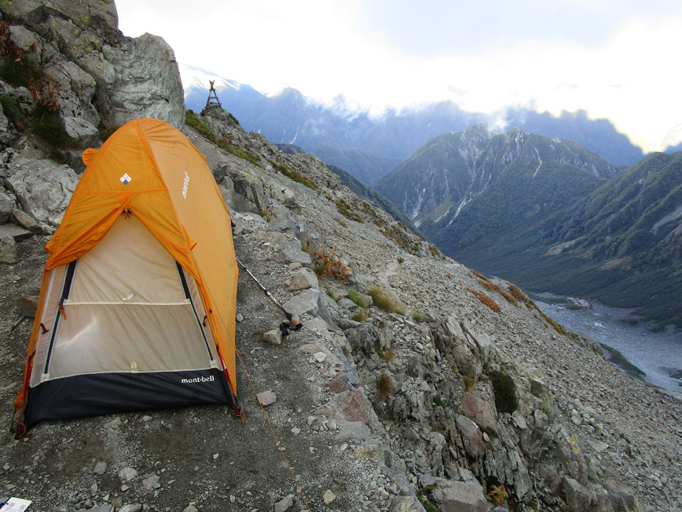 絶壁のテント場。