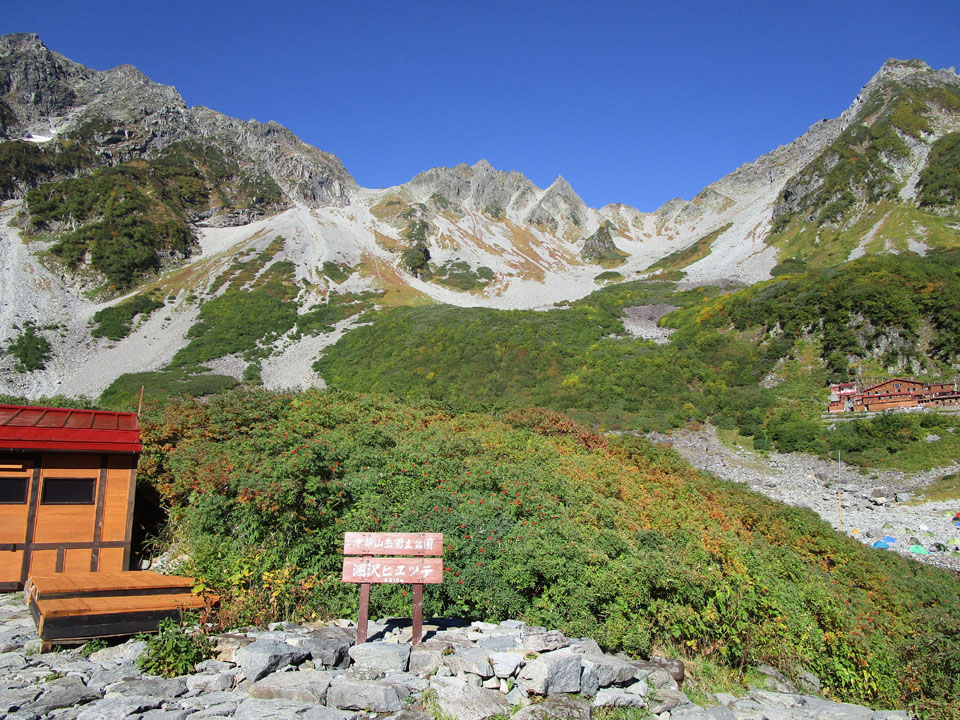 横尾まで降りてきた。ここまでくればほぼ下界。救急車も来れる(2時間以上かかるが)。