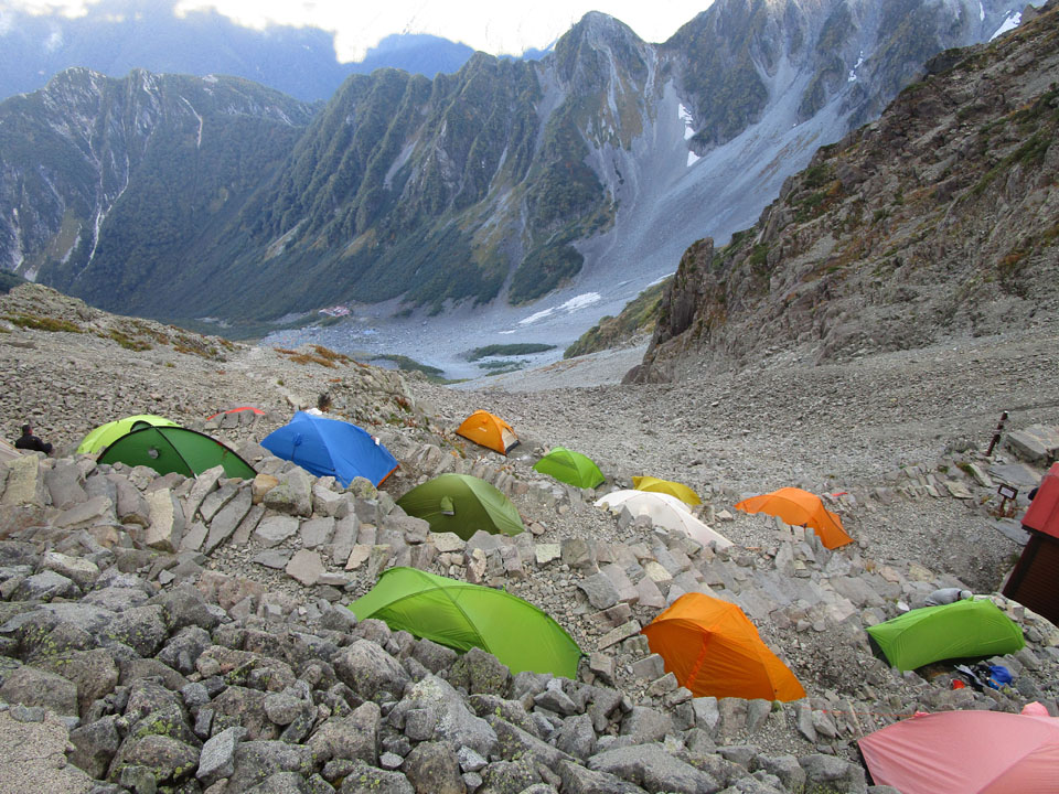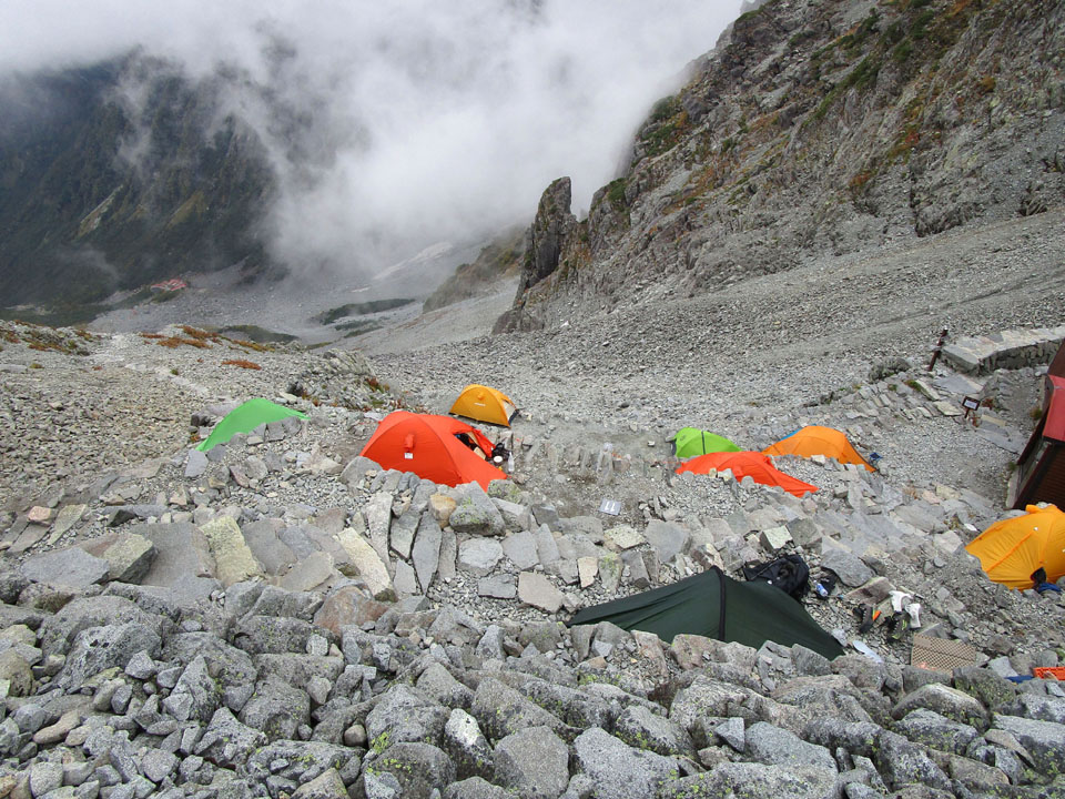 奥穂山頂等でビバークになってしまったという話も聞く(奥穂山頂は5張程度)。