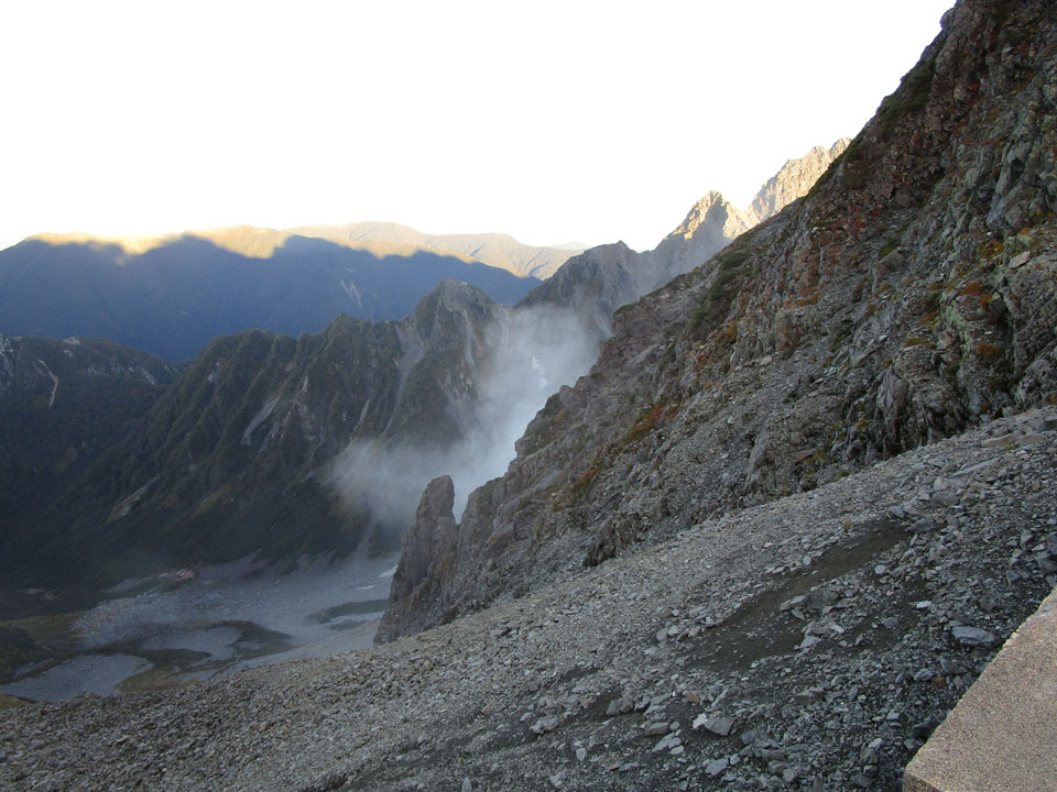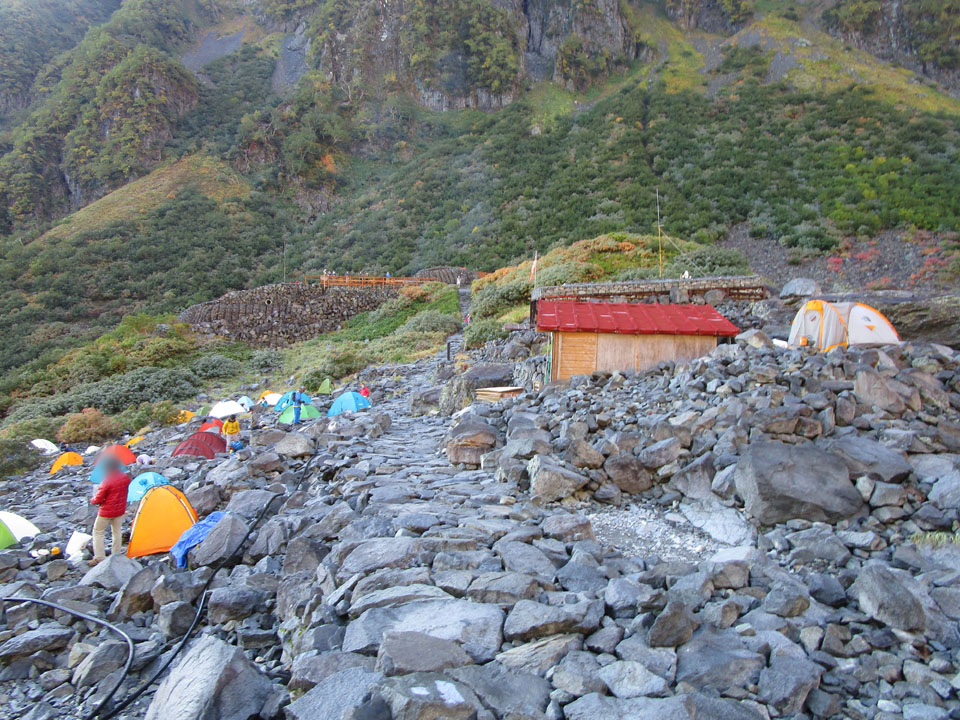テント場への落石はなかった。