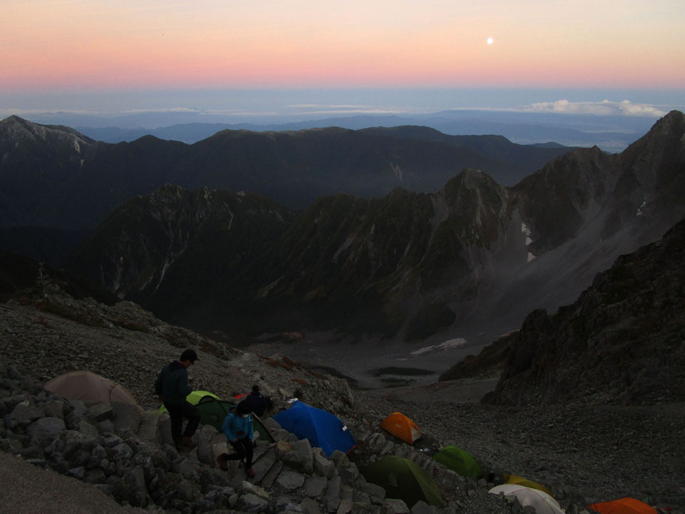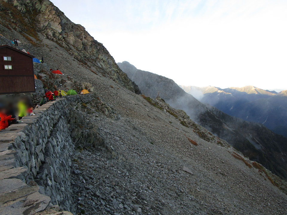 穂高岳山荘のテント場は予約制だが、満室でも入れ替わりが激しく、