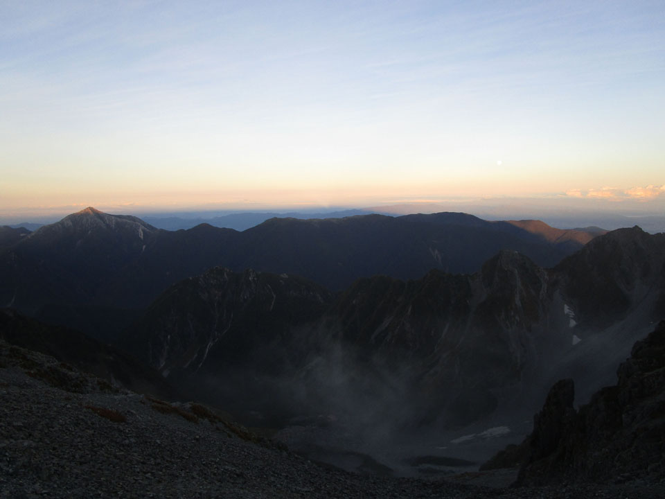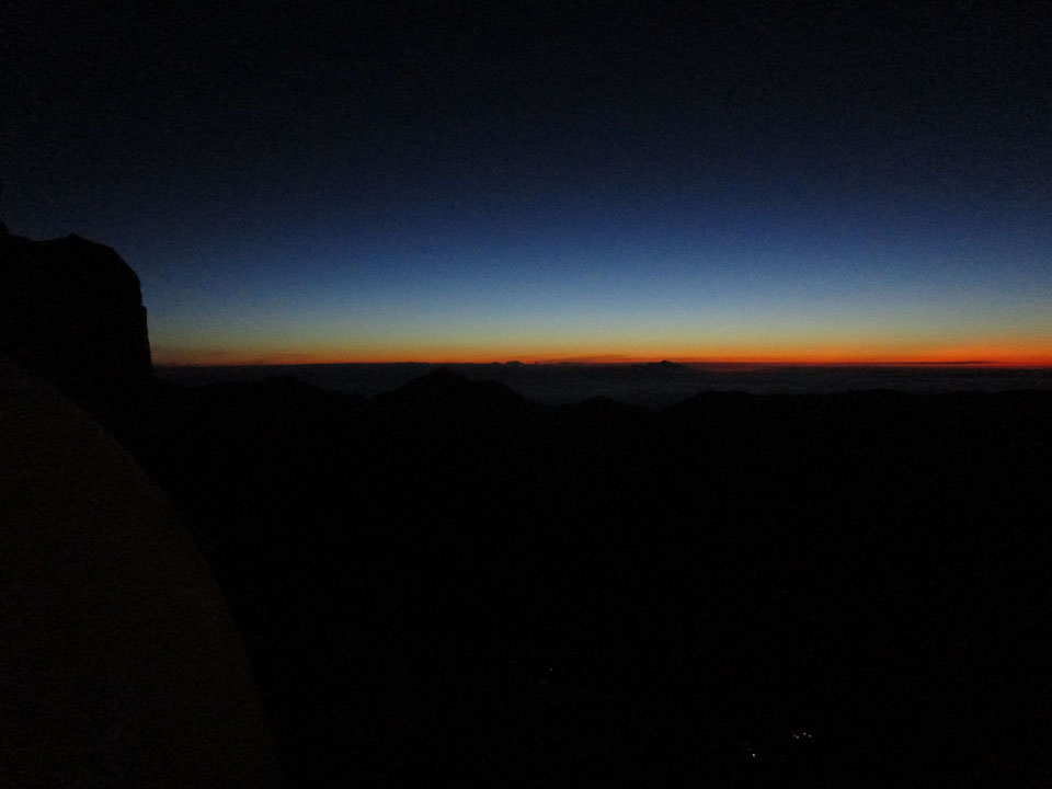 ヘッドランプ無しで歩けるくらいになったので、下山開始。