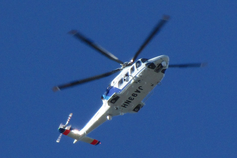 岐阜県警のヘリが飛来。