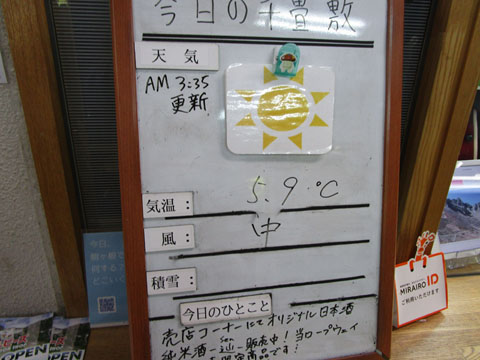 今日の千畳敷は朝で5.9℃だそうだ。