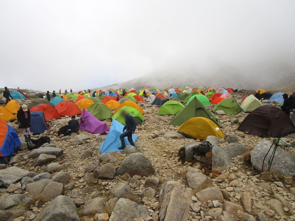 1日目は昼頃遅めに登り、最終日は朝イチで降りると、混雑を回避できる。