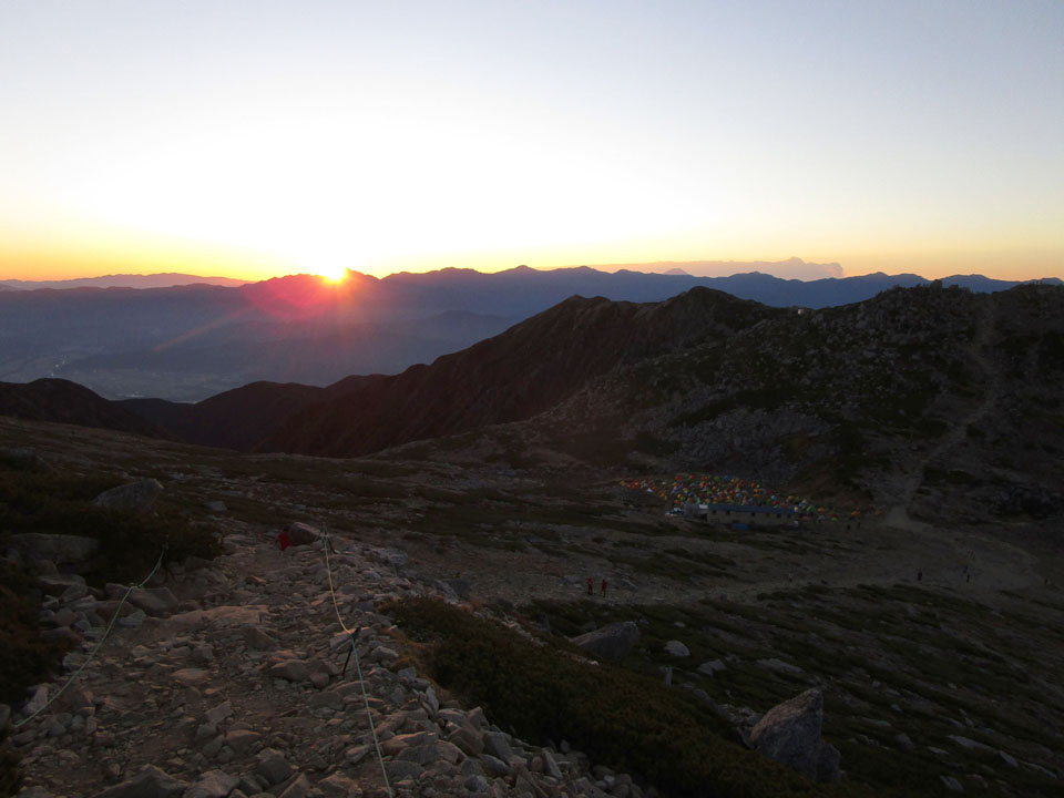 テント場にも朝陽が当たる。