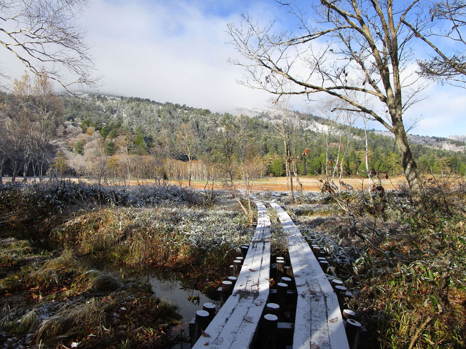 尾瀬ヶ原は積雪1cmほど。
