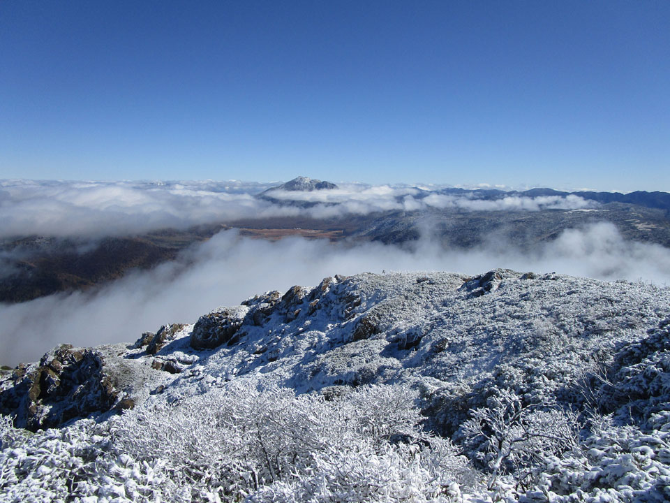 中腹まで来ると雪はない。
