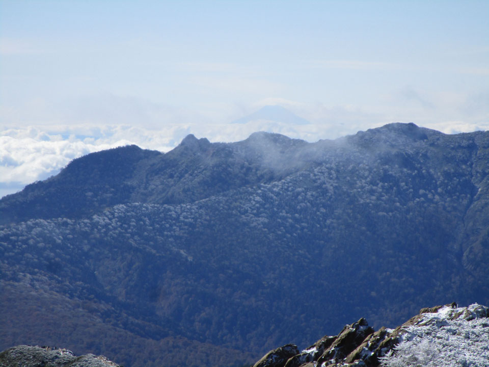 武尊山の奥には富士山が見える。