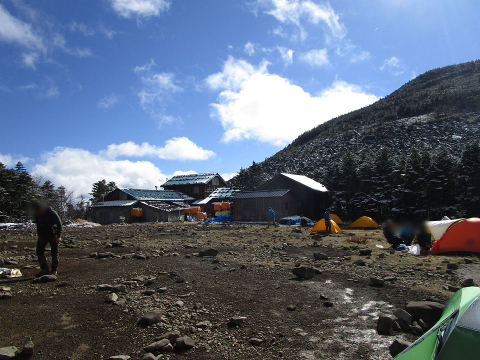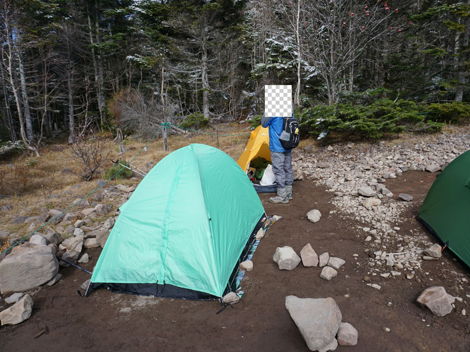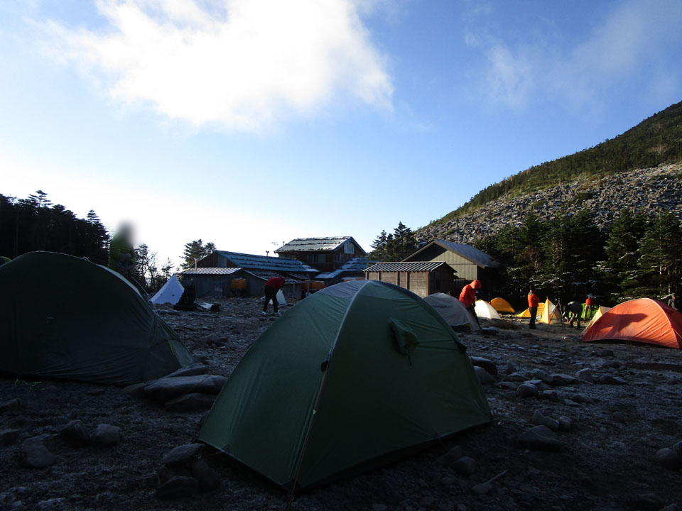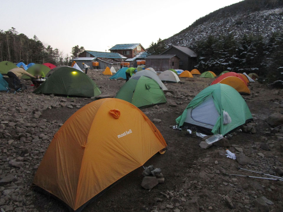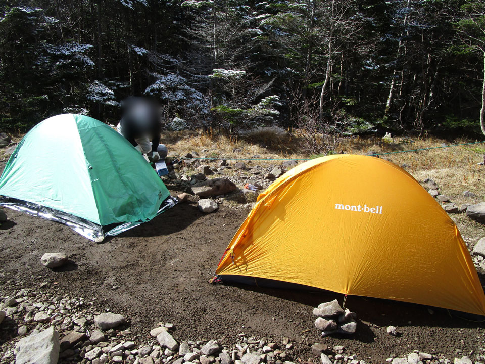 樹林帯だが、かなり大きいテント場のため、風をよけられる西側のほうがいい。