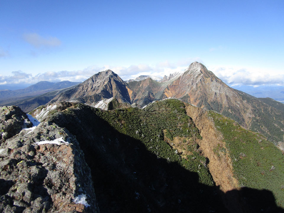 八ケ岳は長野県/山梨県にまたがる山塊の名称である。