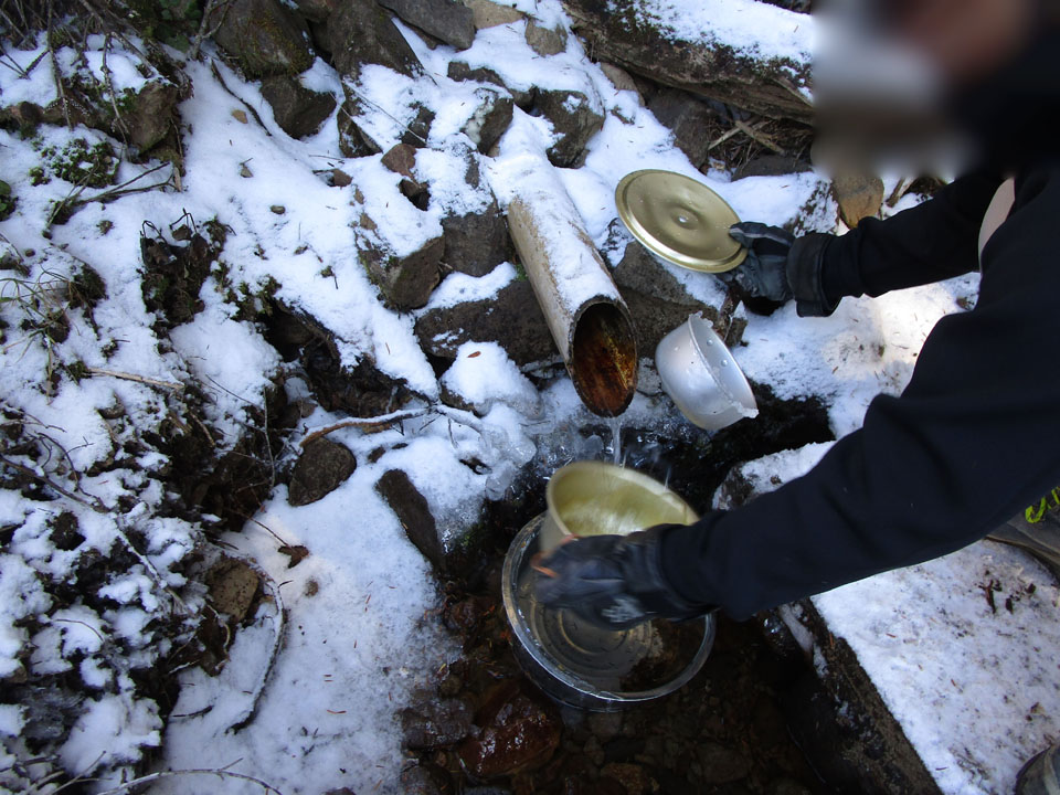 戻ったあと、すぐに水を調達する。水場は小屋から5分。(実測)