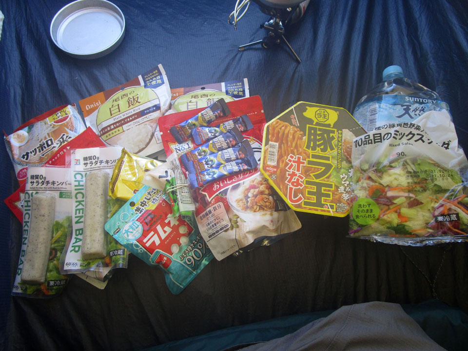 モンベル0#(-6℃まで)+メスナー(15℃まで)+ホッカイロ6枚+マット2枚でぬくぬく快適に睡眠。