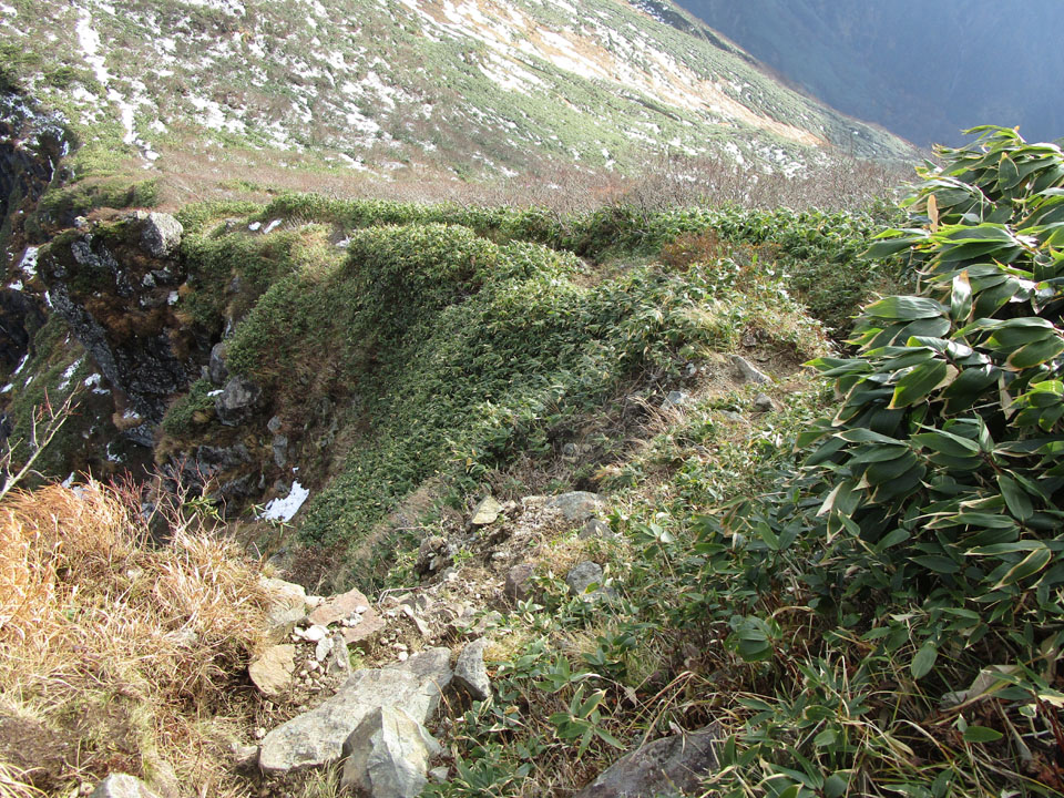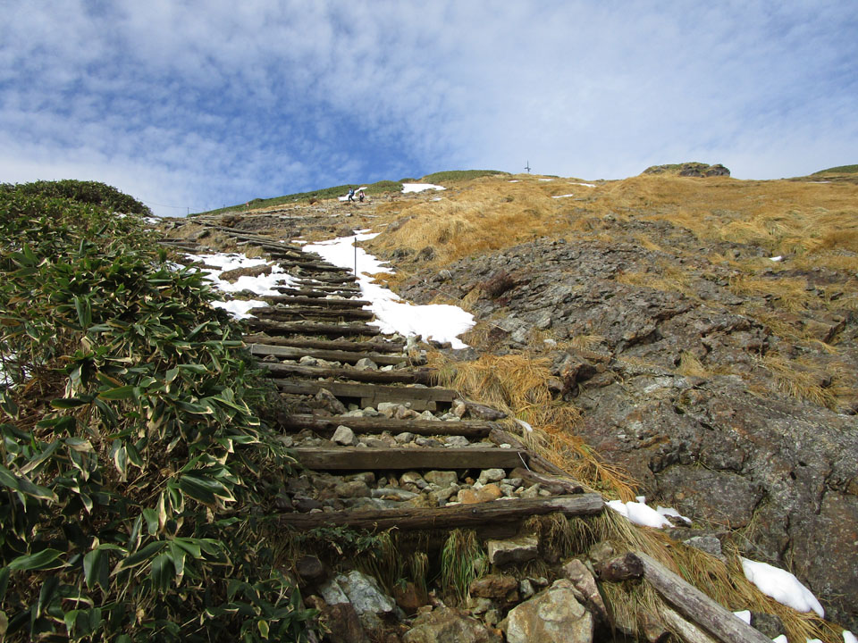 天狗の留場(標高1,650m付近)からは雪が出てくる。