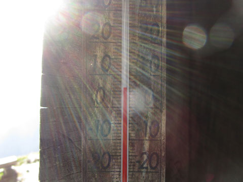 肩の小屋で気温は6℃と暖かい。