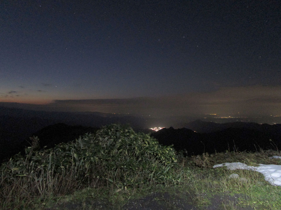 新潟の灯りが見える。