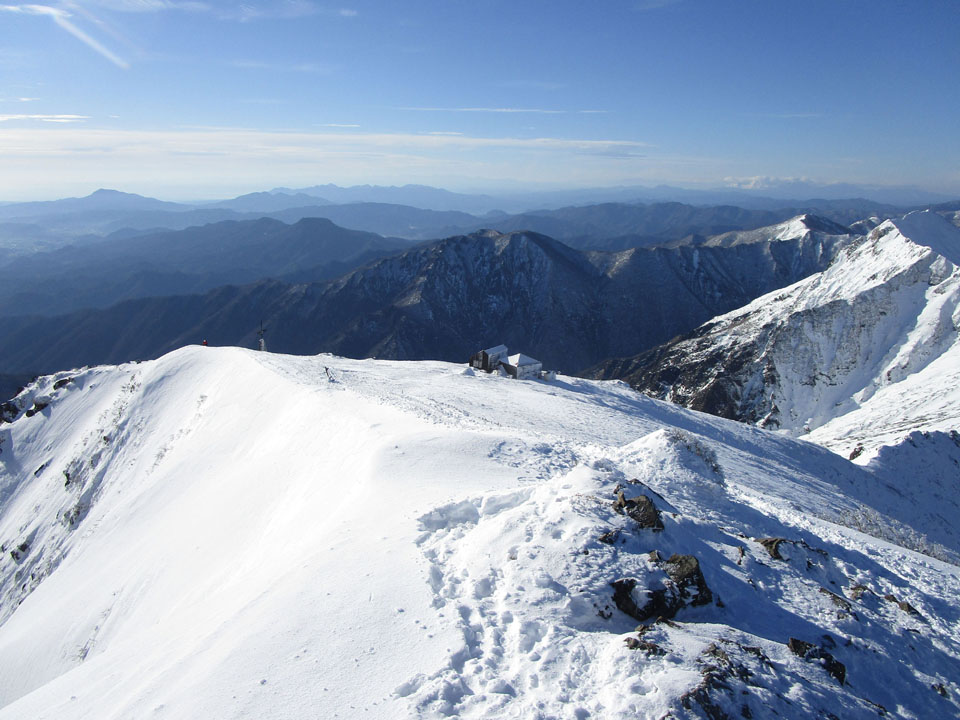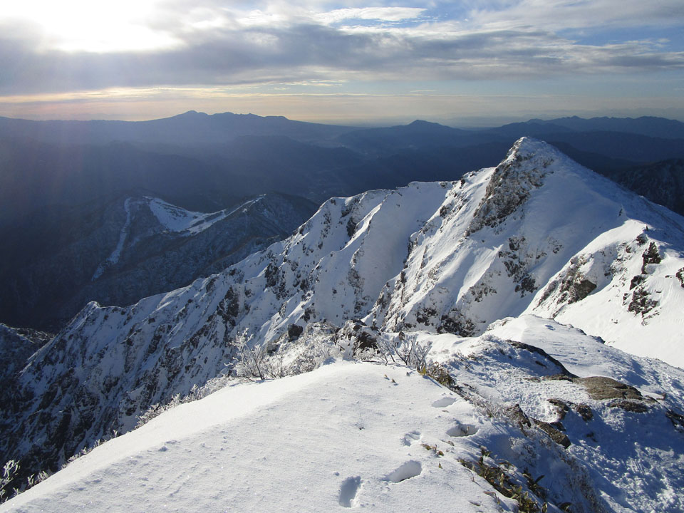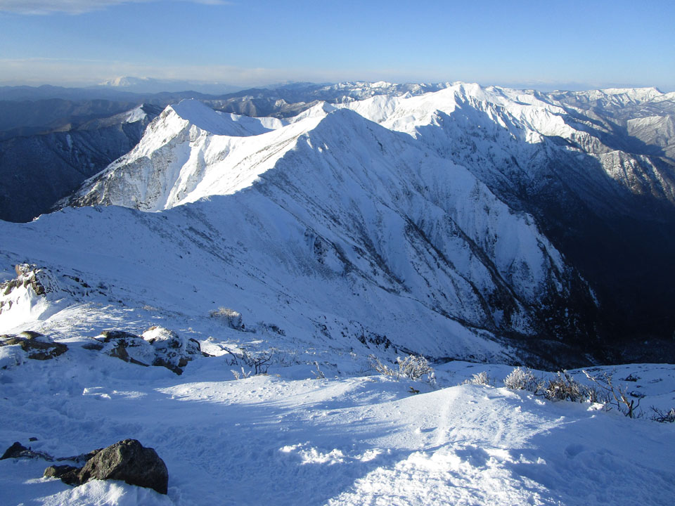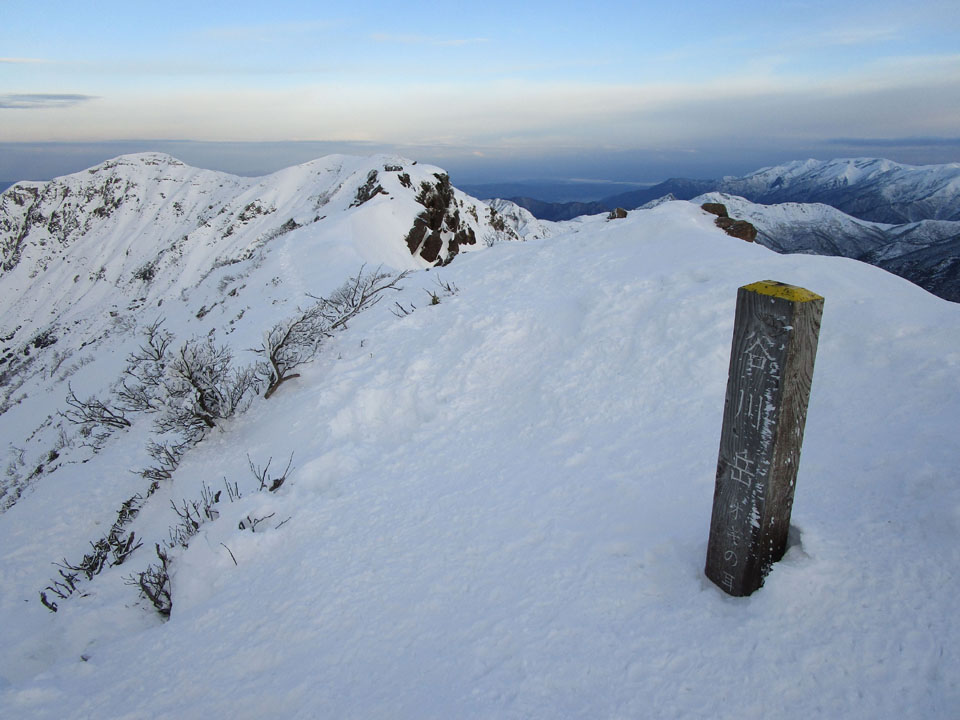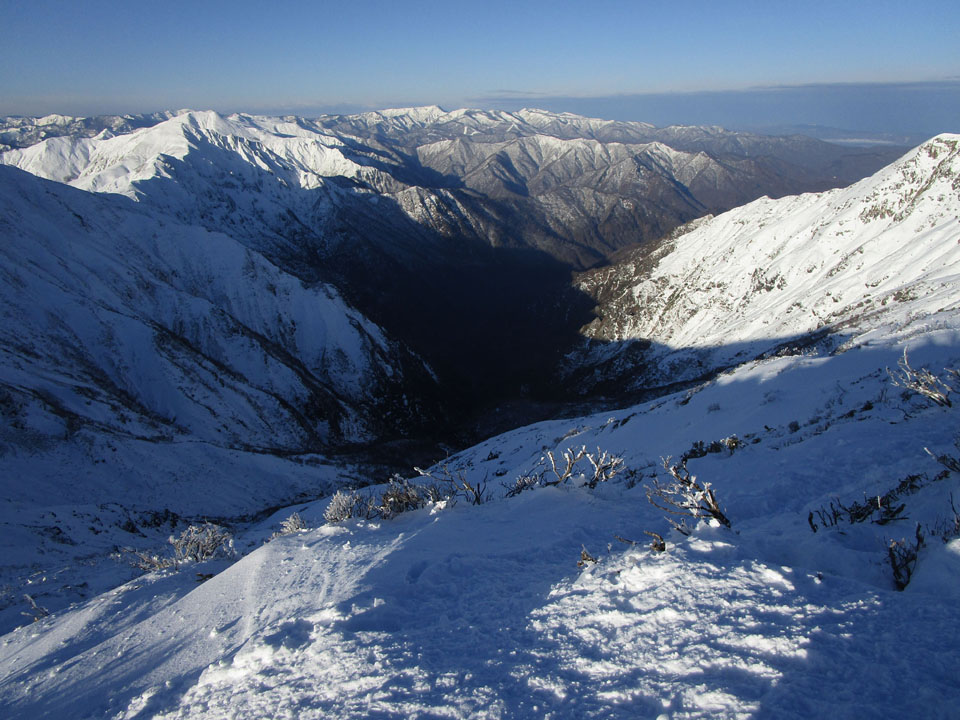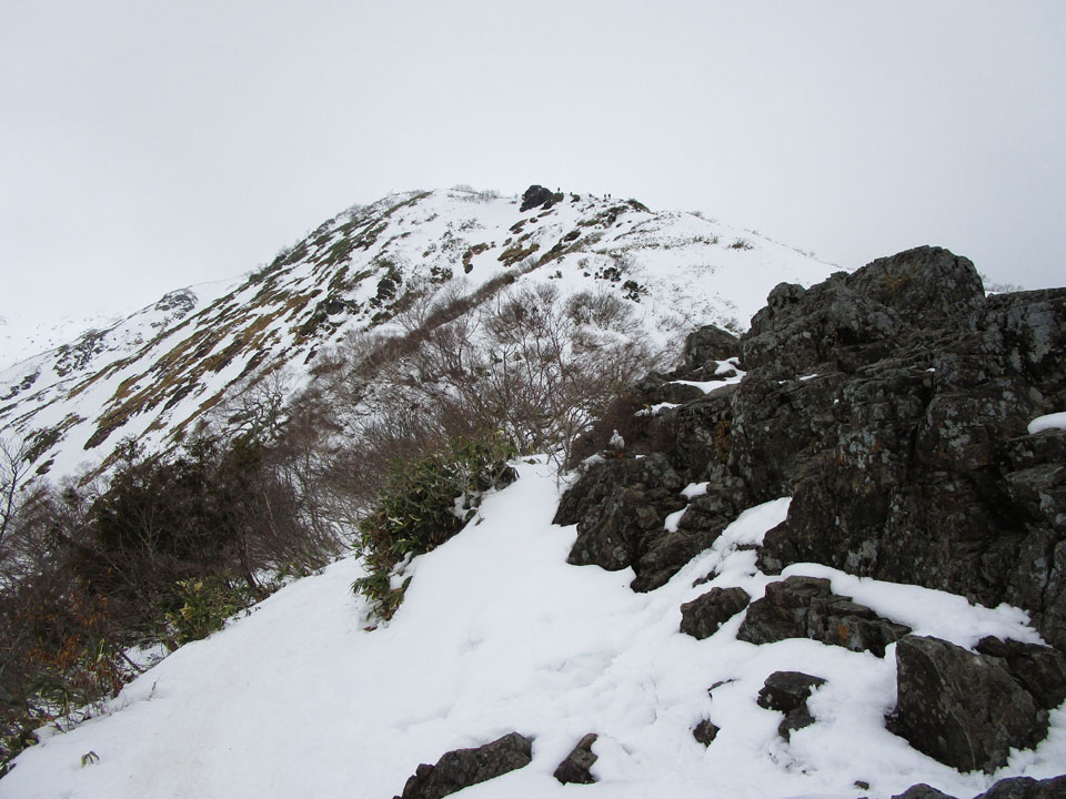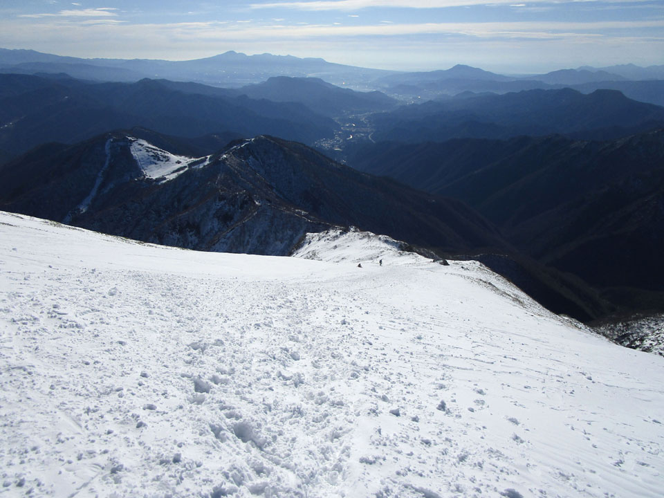 一ノ倉方面へはトレースあり。雪が硬く、滑落に注意。