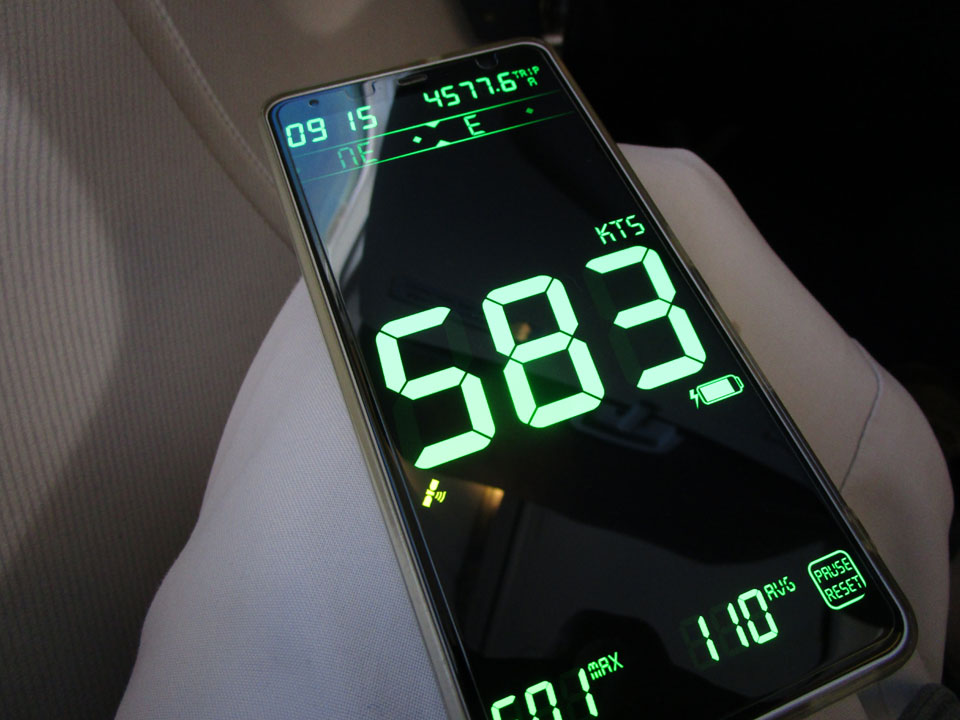 追い風が強く、1080km/h出ている。300m/sだ。すごい。拳銃弾よりも速い。