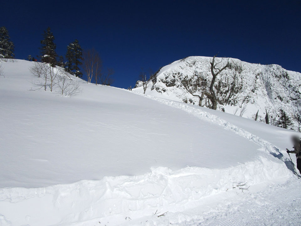 シリセードで一気に降りてしまう方法もあるが、大破に注意。