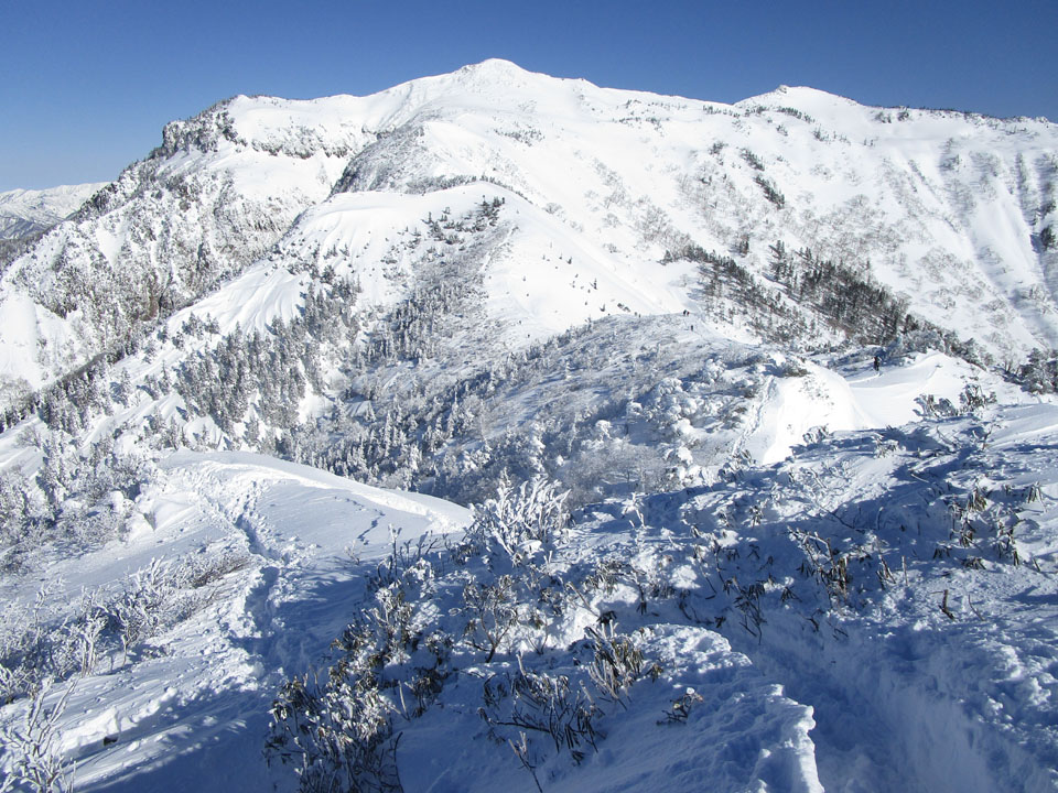 剣が峰〜沖武尊〜中ノ岳が見える。
