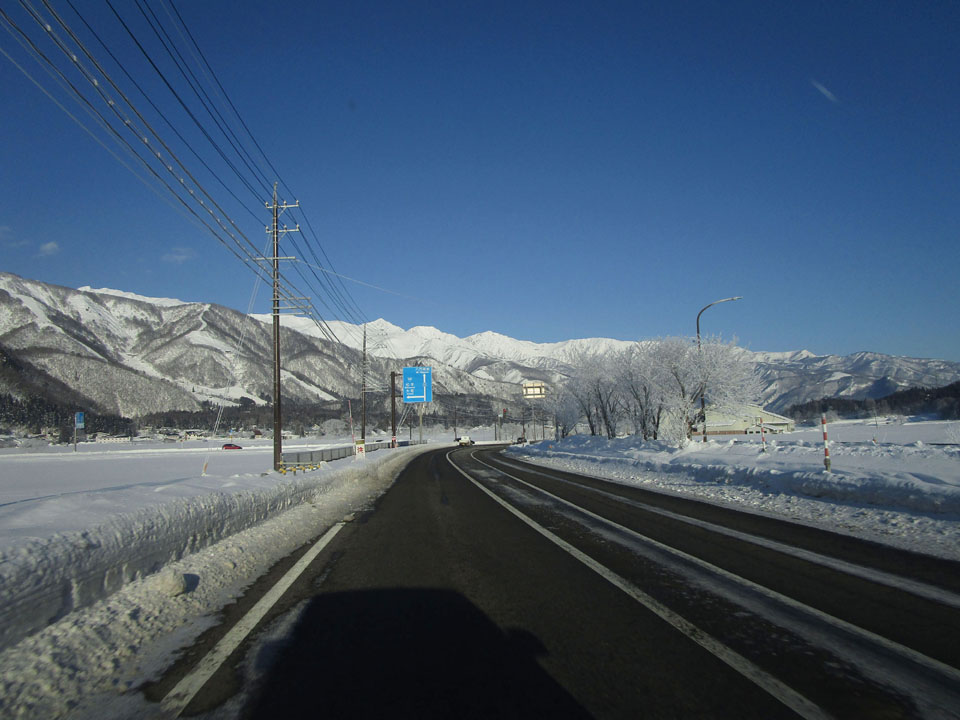 白馬が近づくと正面には白馬五竜スキー場が見える。
