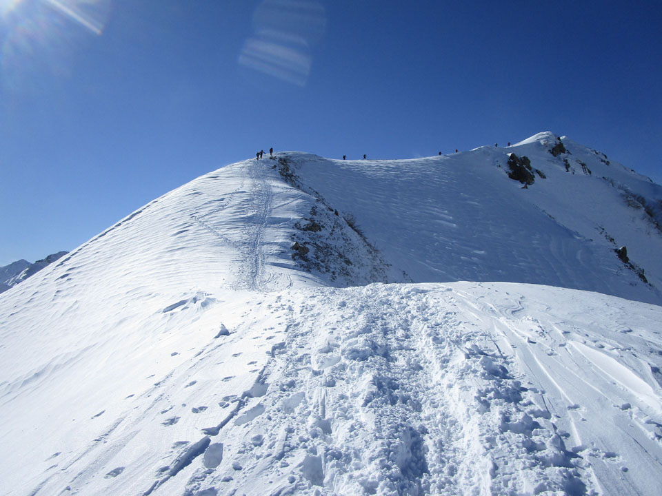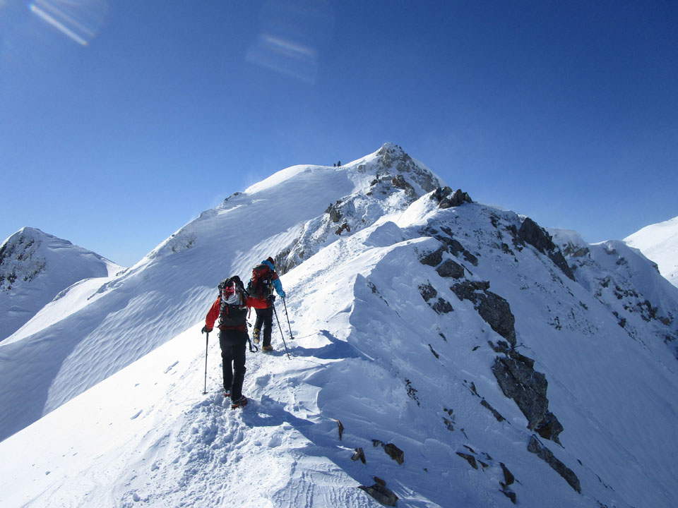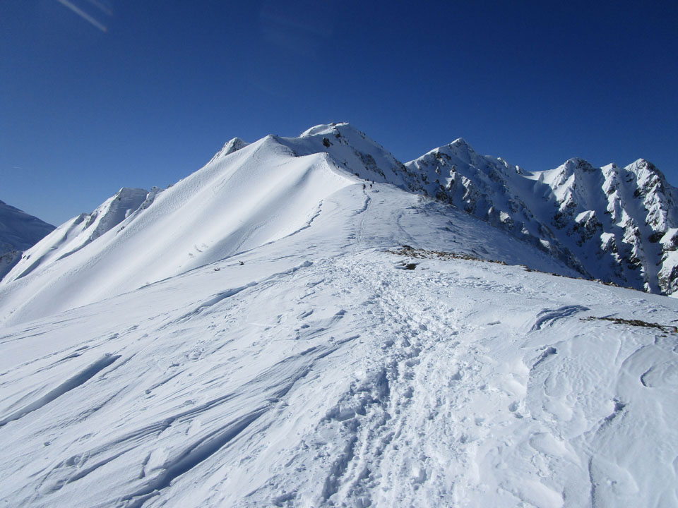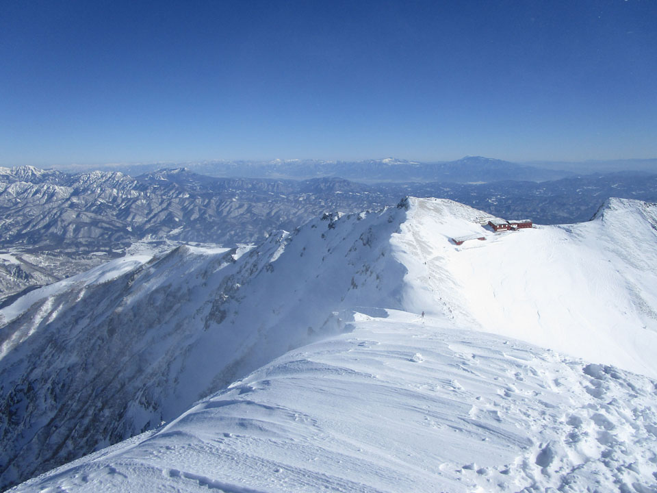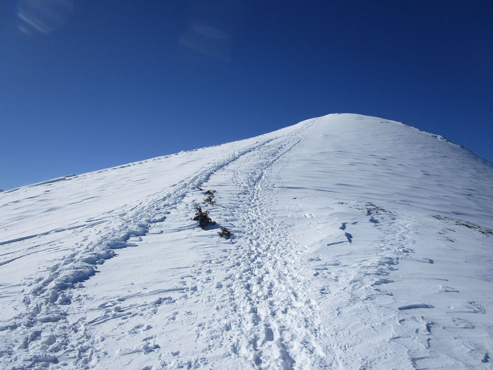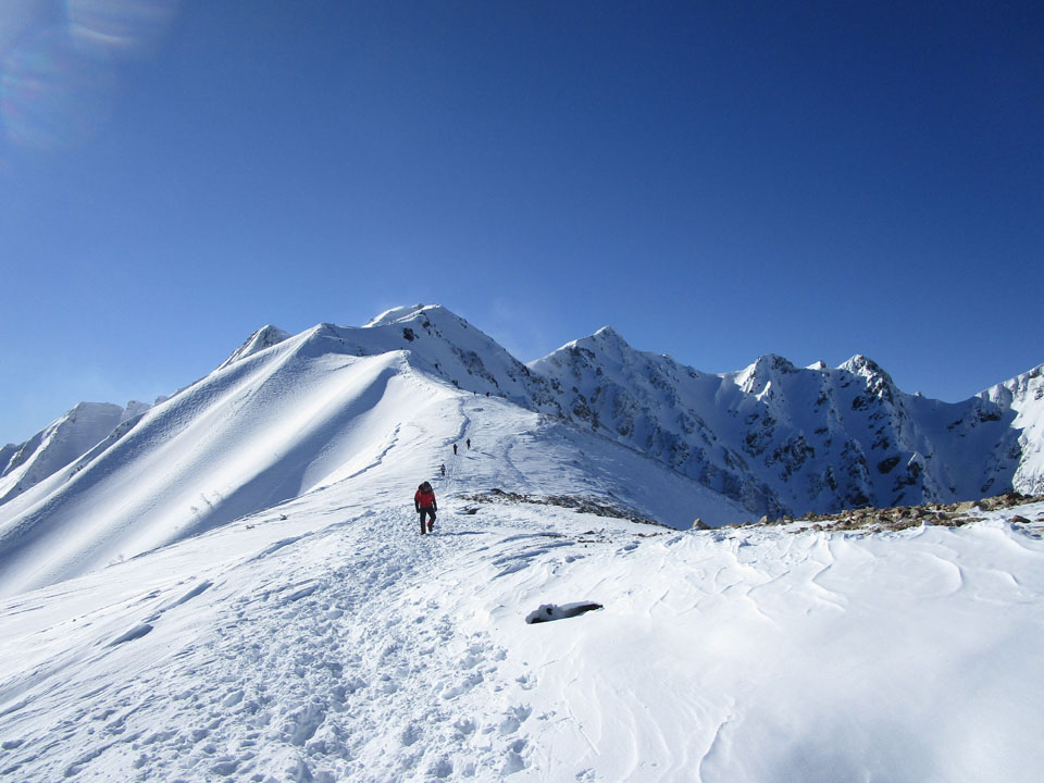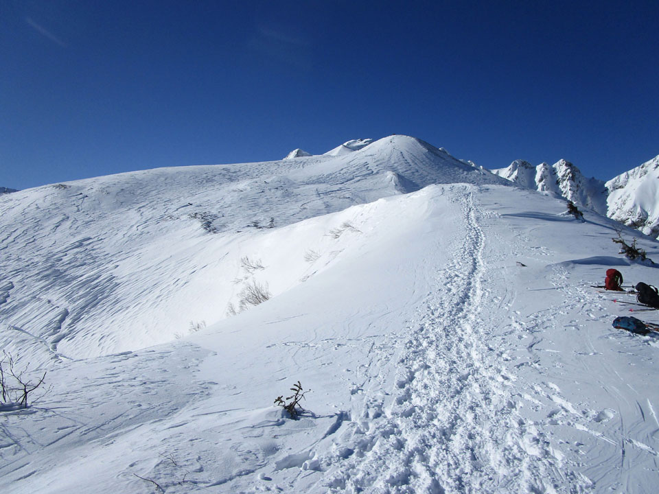 ここから先は稜線が左右に切れ落ちているので、雪が硬いときは滑落に要注意。