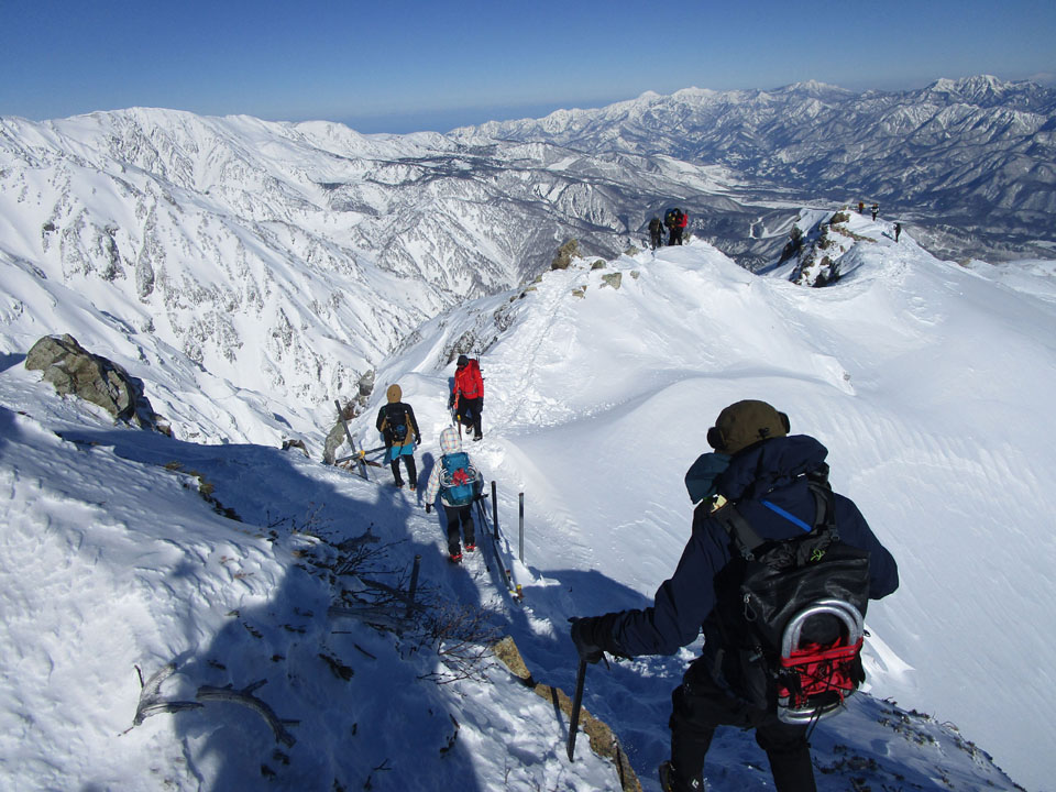山岳会等で知識技術経験をつけ、よきリーダーに引率され、登ることが望ましい。