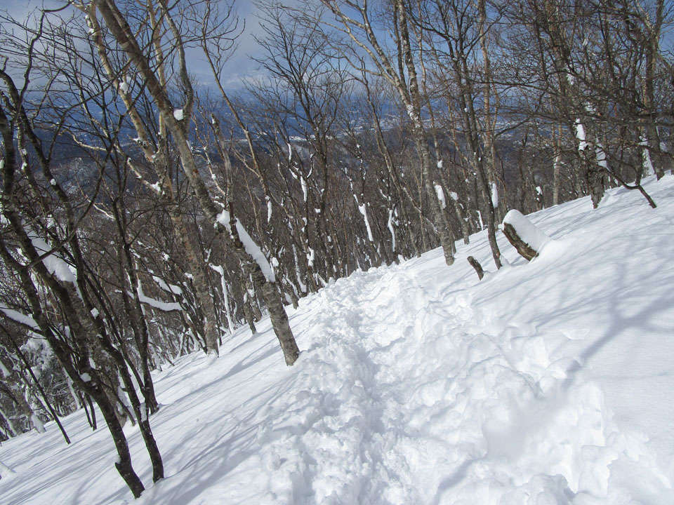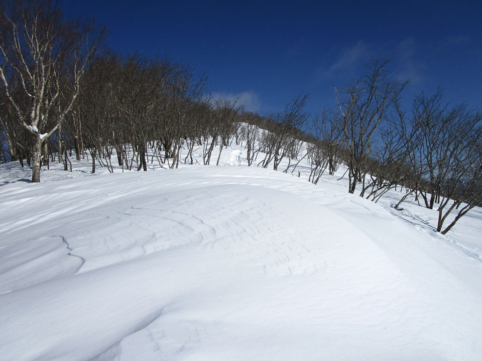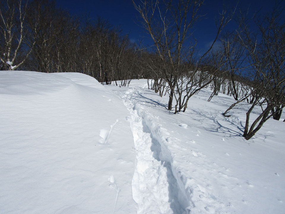 少し雪庇ができているが、危険なほどではない。