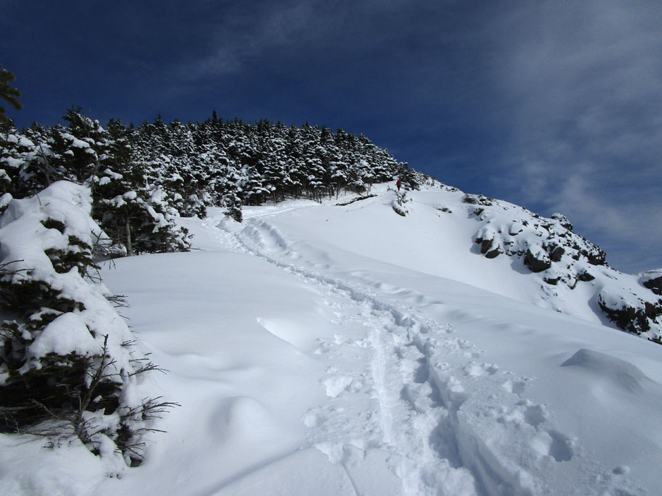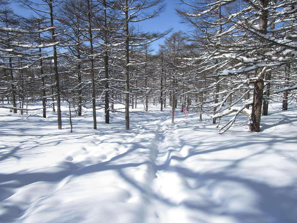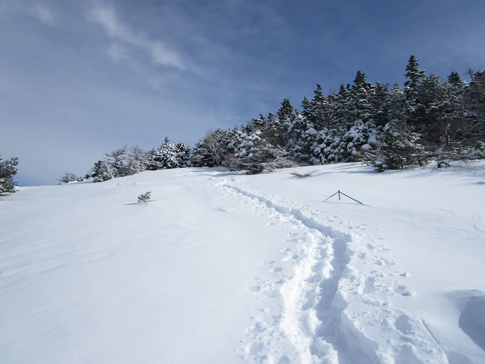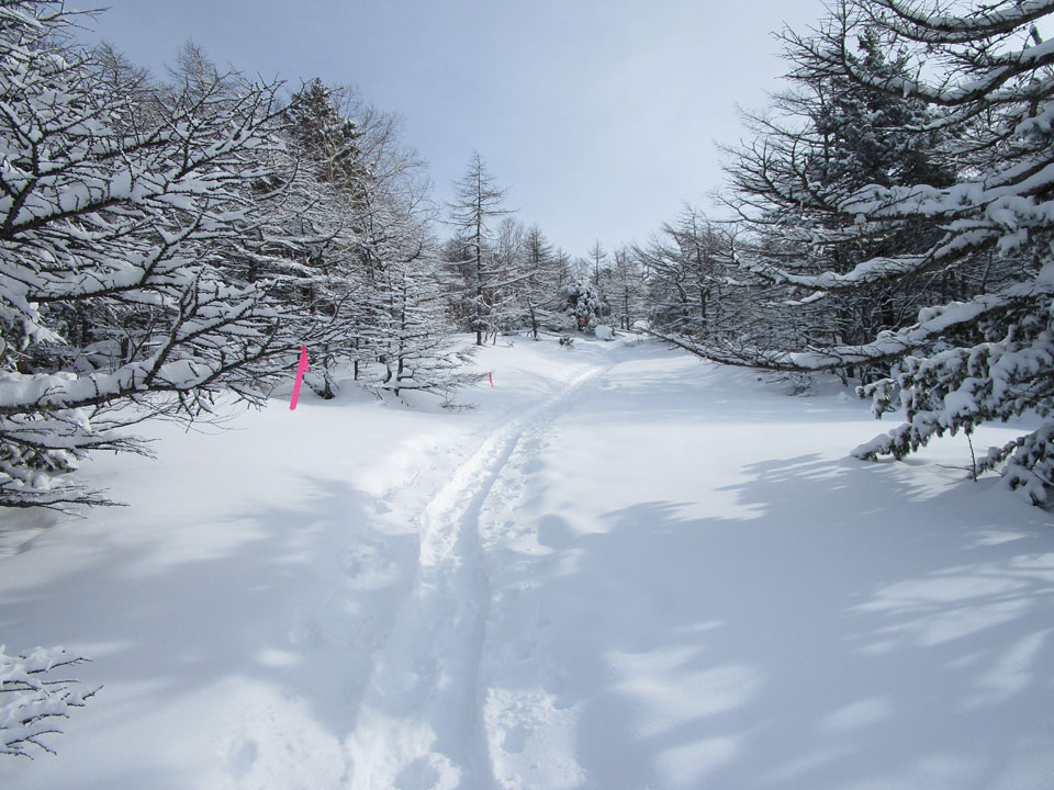 草すべりコースは誰かが降りたトレースがある。すごい。