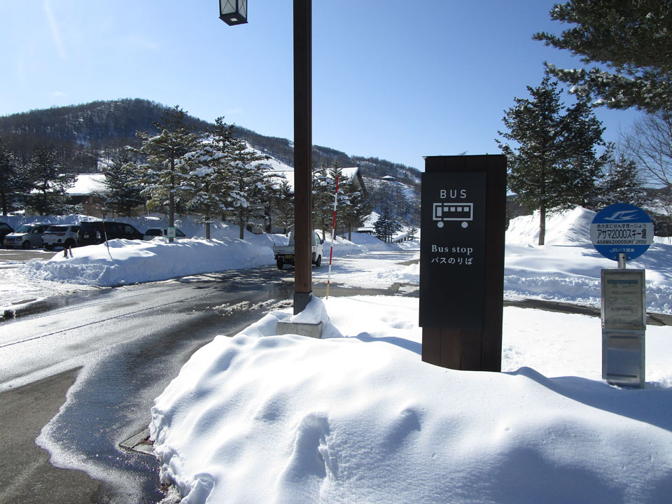 路面は凍結があり、バスはスタッドレスタイヤ+チェーンだった。