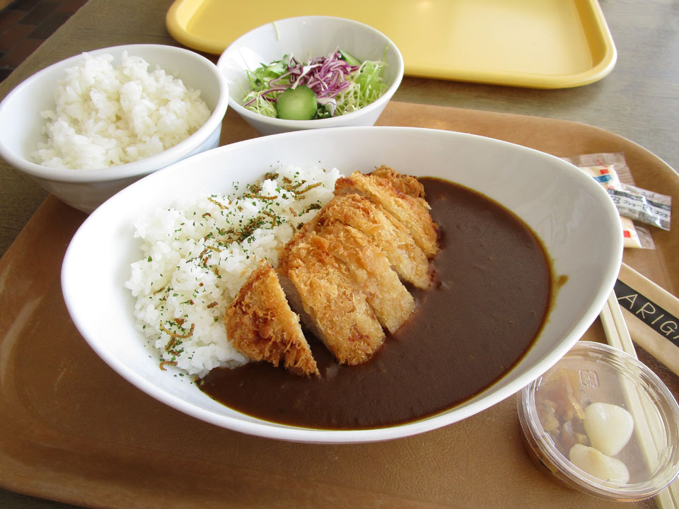 スキー場の食堂で飯にする。ポークカツカレーご飯大盛り1,600円だ。