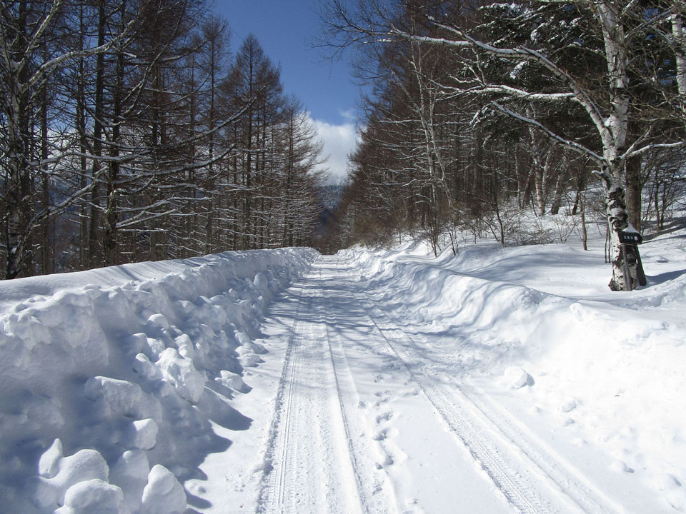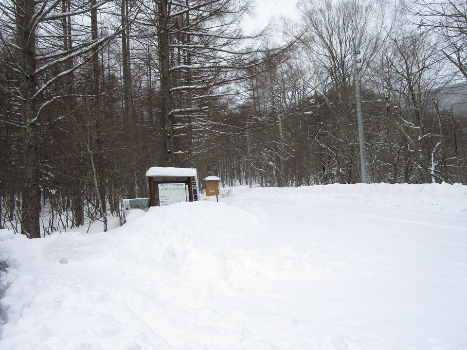 ここから除雪された稲子湯に通じる道路だ。ここからは5km、徒歩50分。