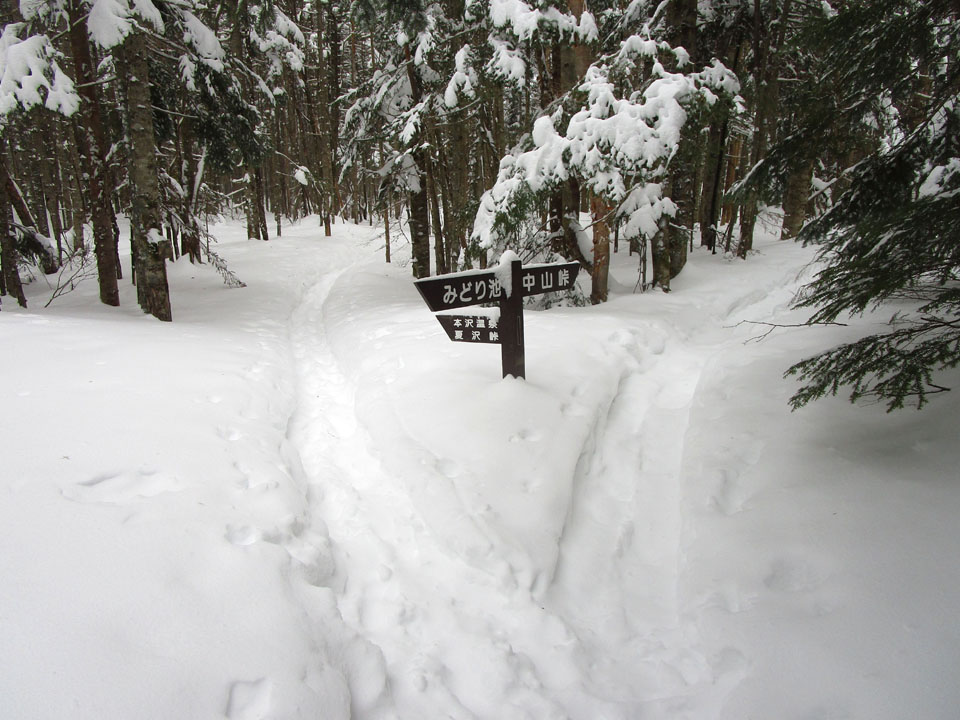 ここから稲子登山道入口BSまでの登山道にトレースがない。