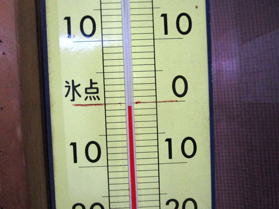 室内は-1℃程度と暖かい。外は−15℃だ。