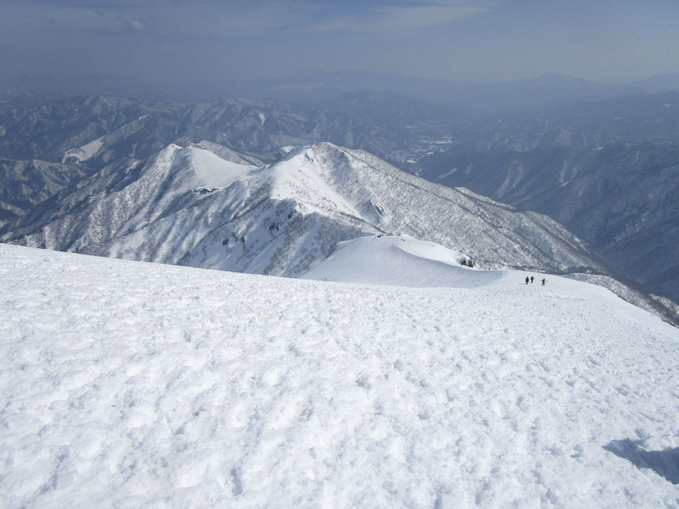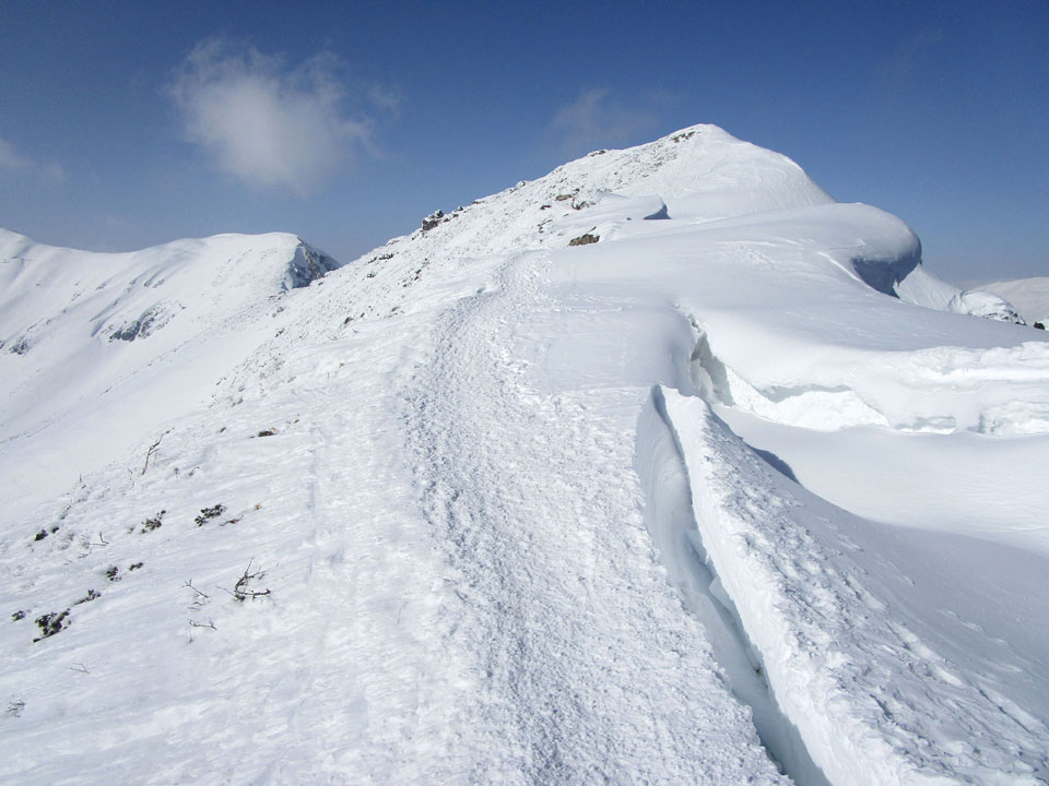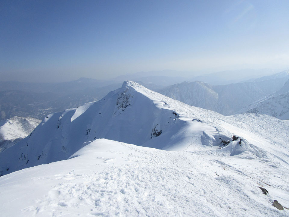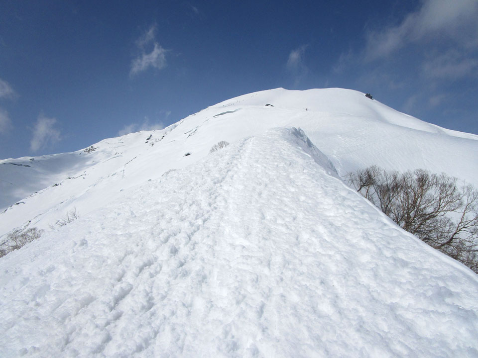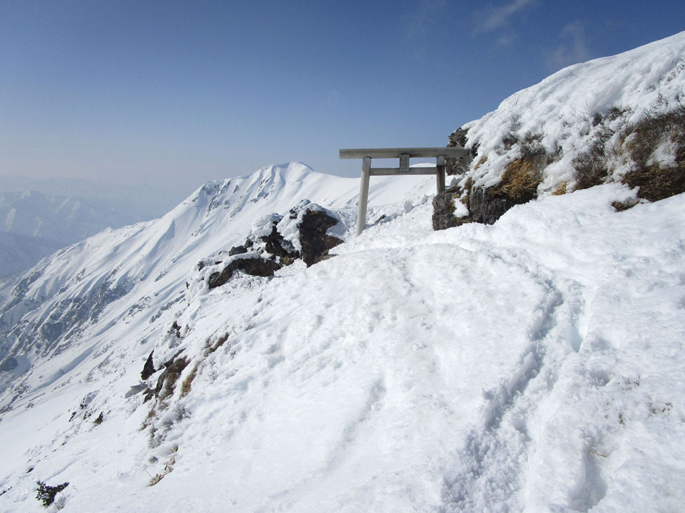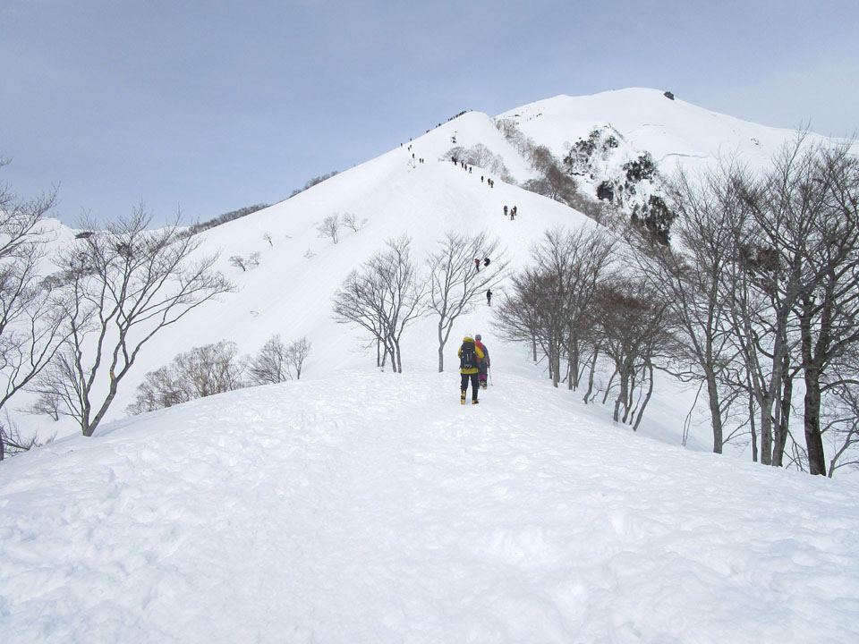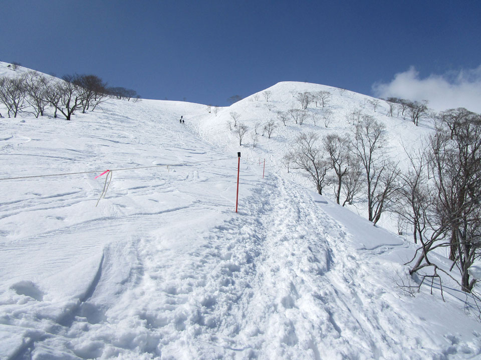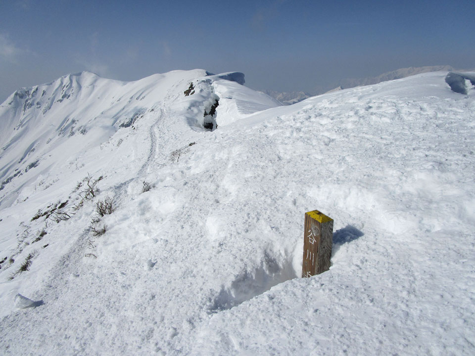 一ノ倉方面へはトレースあり。雪が硬く、滑落に注意。