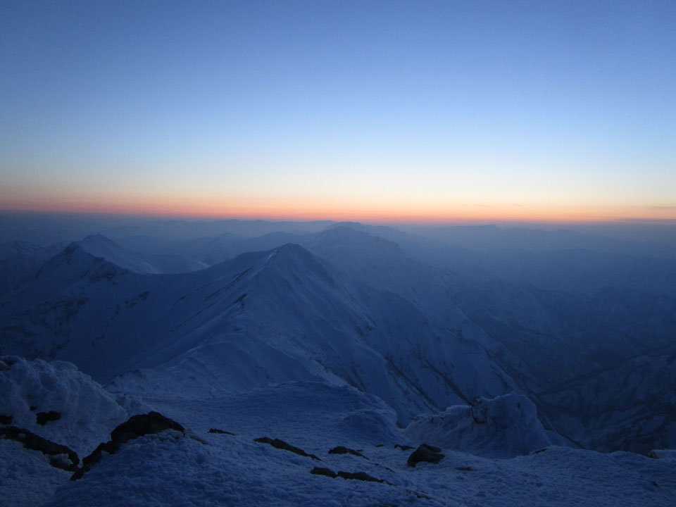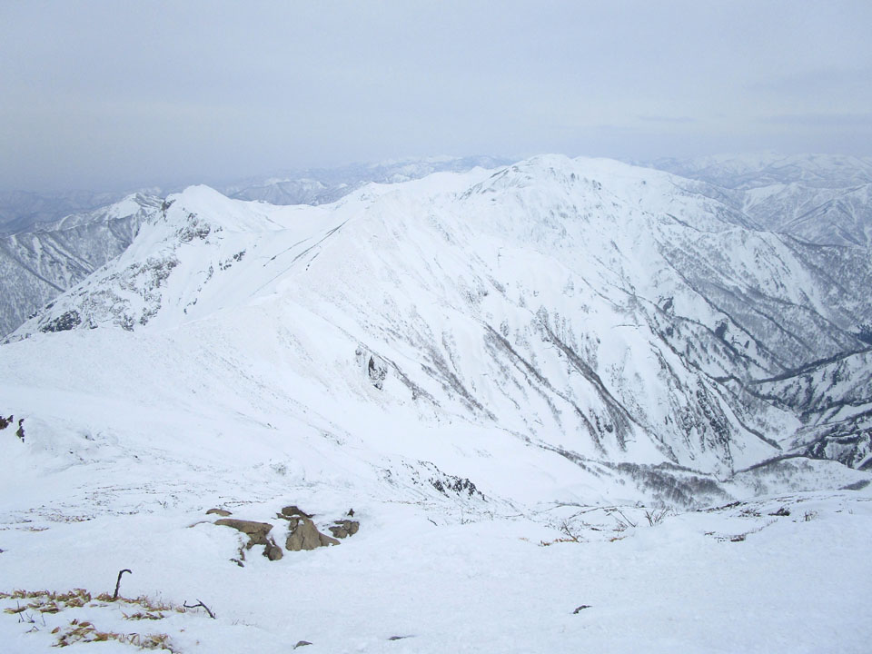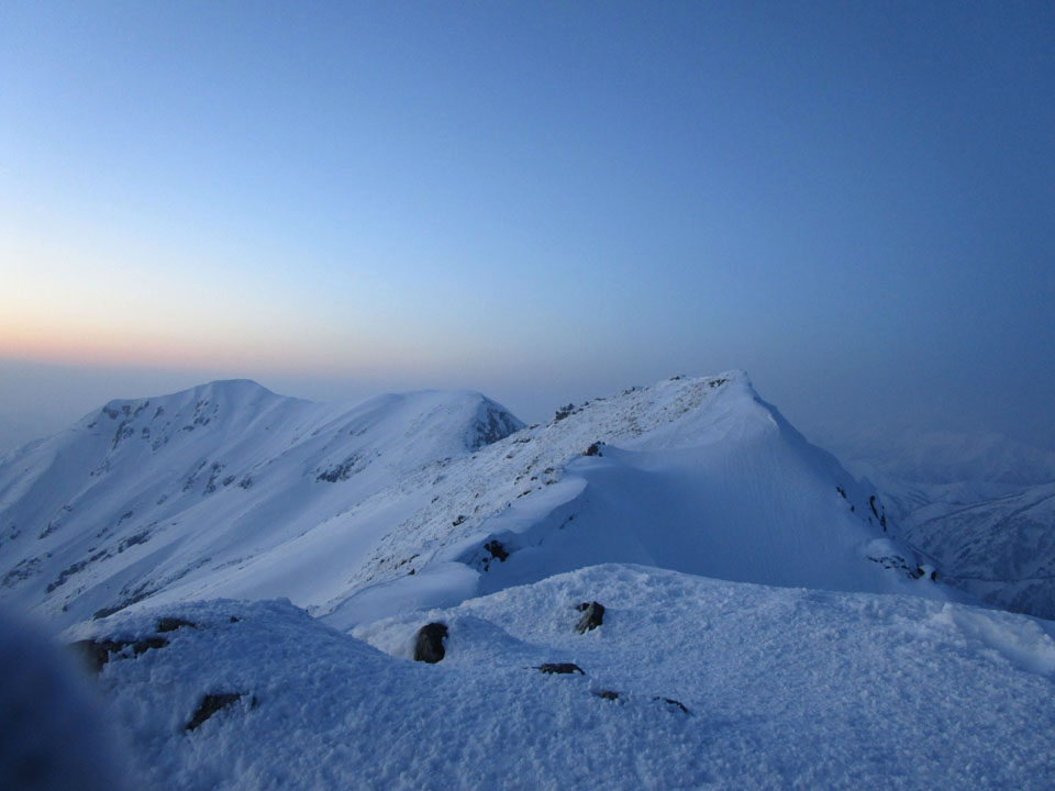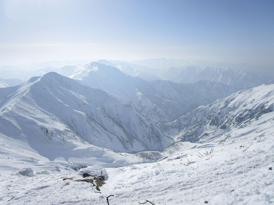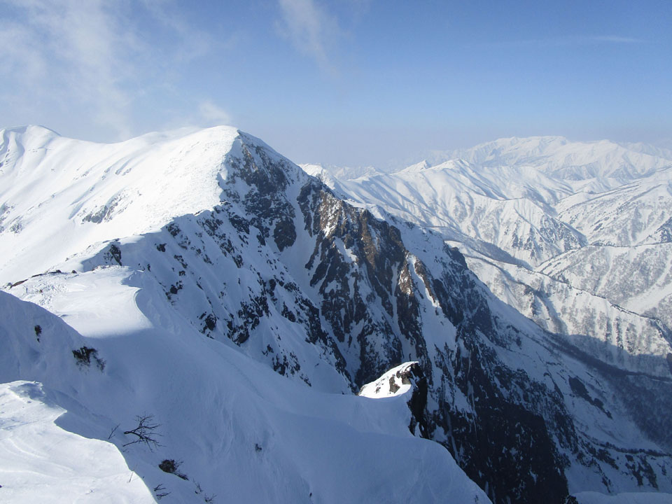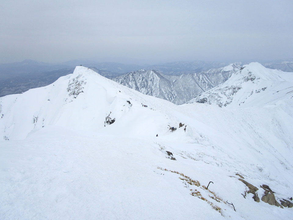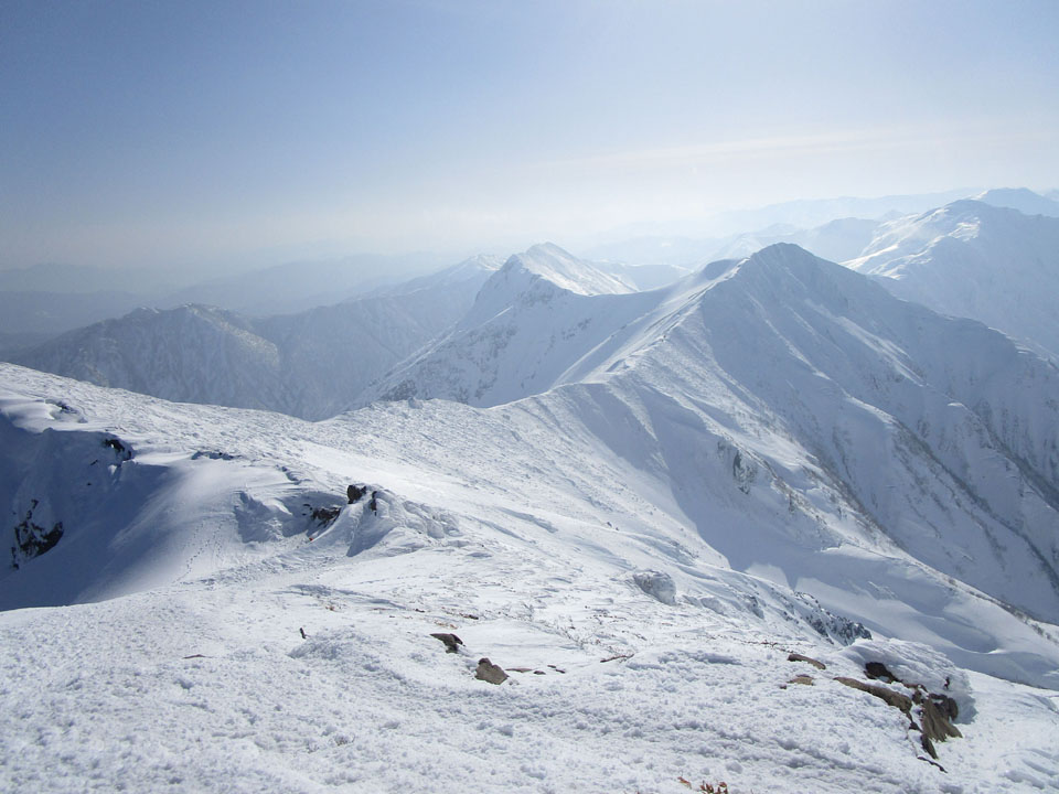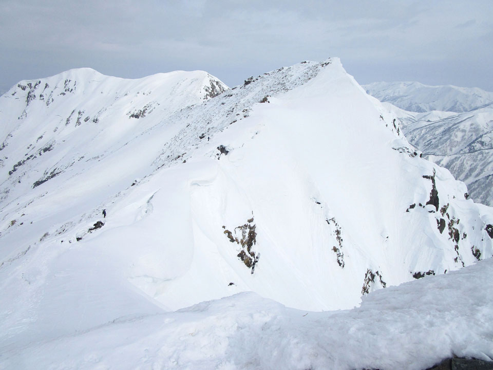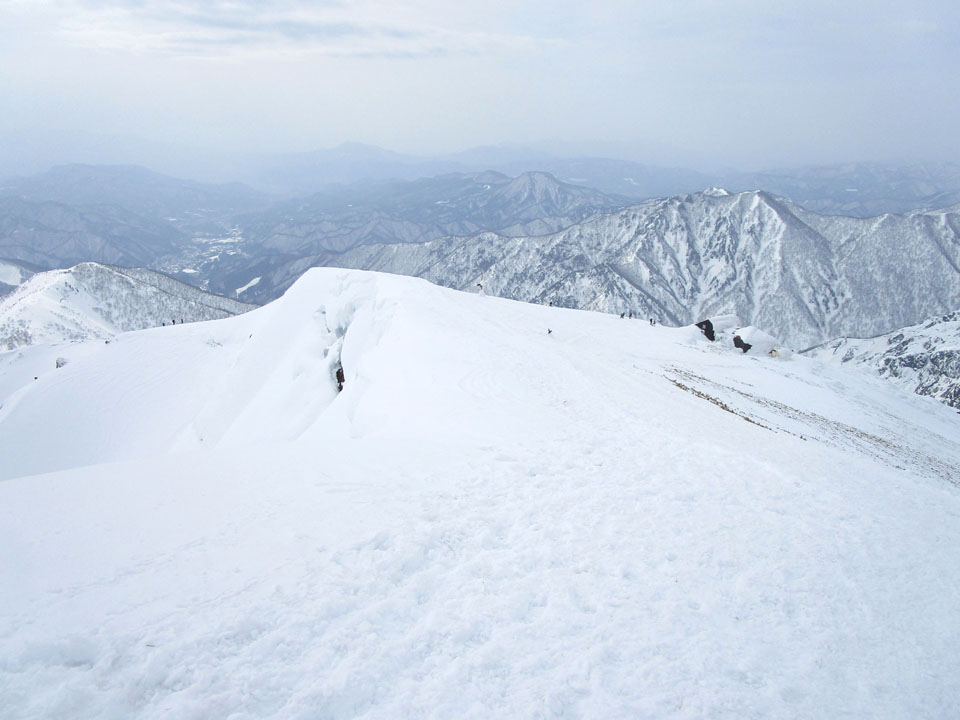 一ノ倉方面へはトレースあり。雪が硬く、滑落に注意。