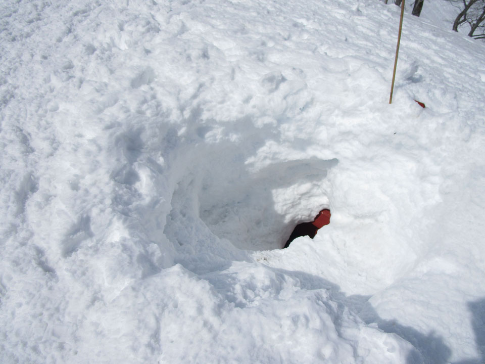 100cmくらいまでなら途中の熊穴沢避難小屋が利用可能で、