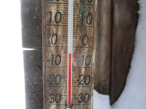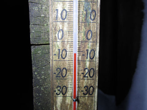 スマホ温度が1℃だったので、小屋内は0℃くらいだろう。