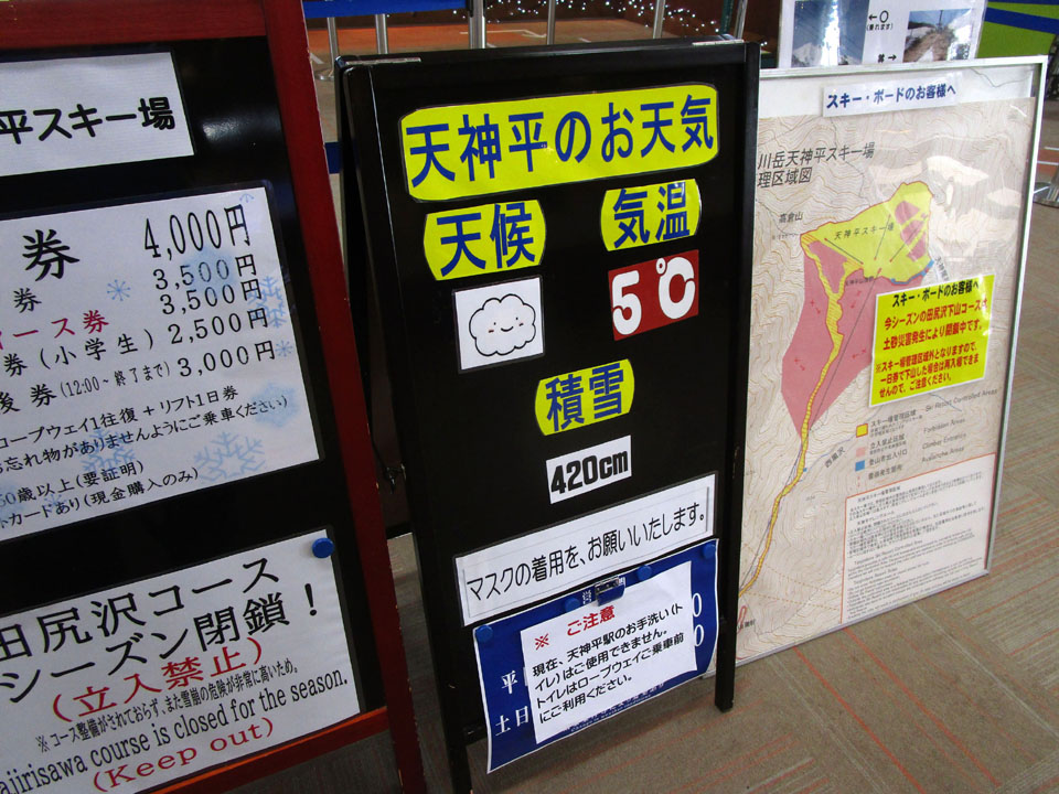 天神平では+4℃。積雪430cm。