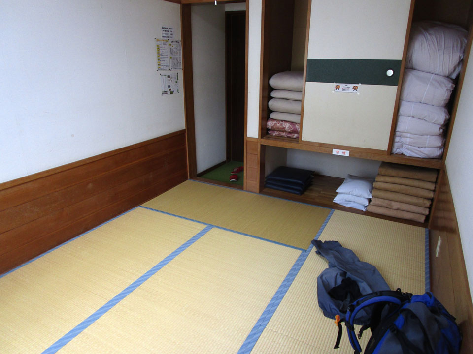 6畳の部屋だが、寝具は3セットあるので、定員3人だろう。