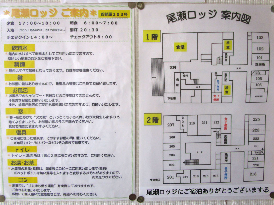 尾瀬ロッジ、山ノ鼻小屋とも、1人でもできるだけ個室対応してくれる。