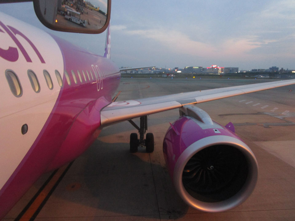 乗る機体がやってきた。帰りはA320-200neoだ。新タイプのエンジンだ。